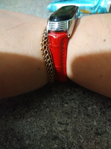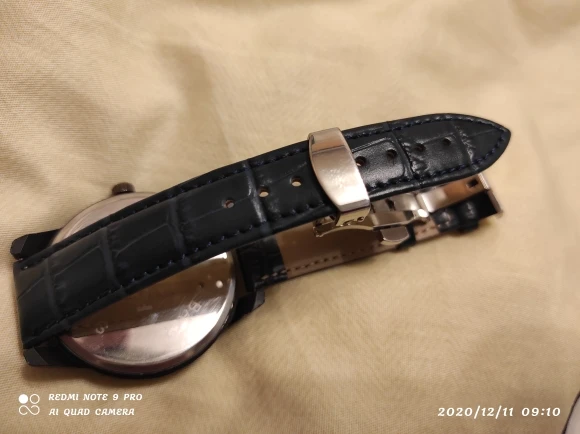 Мне, честно говоря, не понравился ремешок. Очень громоздко сидит, объём большой, болтается на руке. На кожу не похоже, жесткий. Застёжка на любителя, быстро надеть/снять часы не получится, так как в шлевки ремешок очень туго заходит. Пошла искать другой(