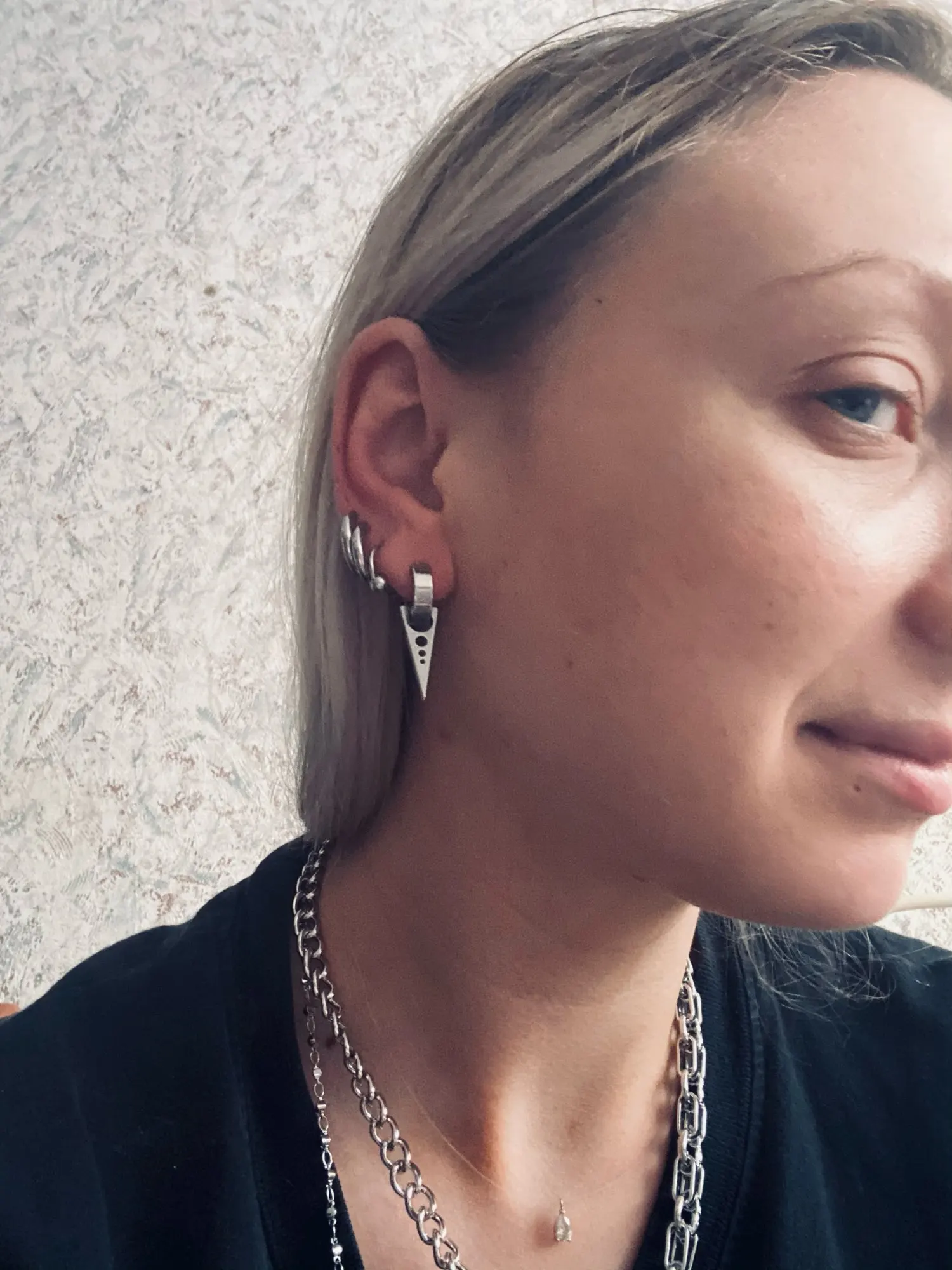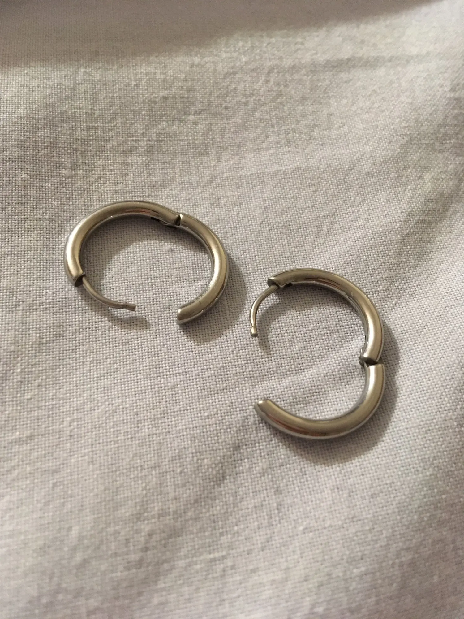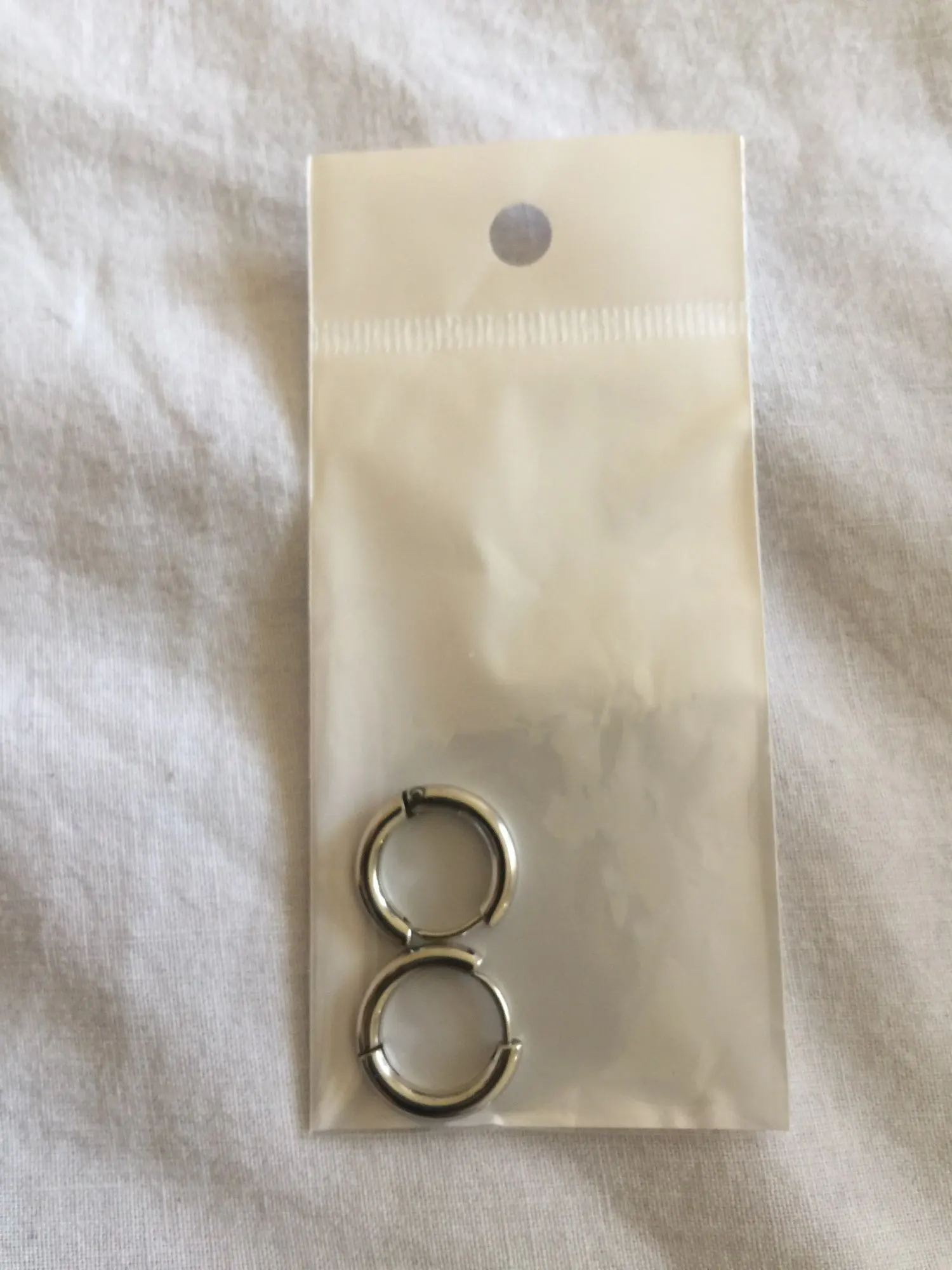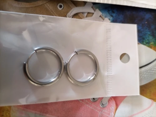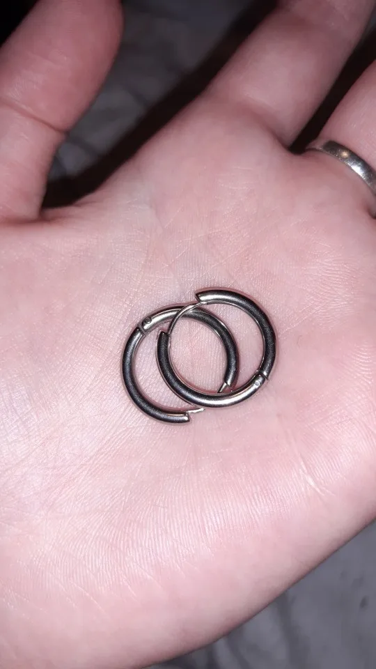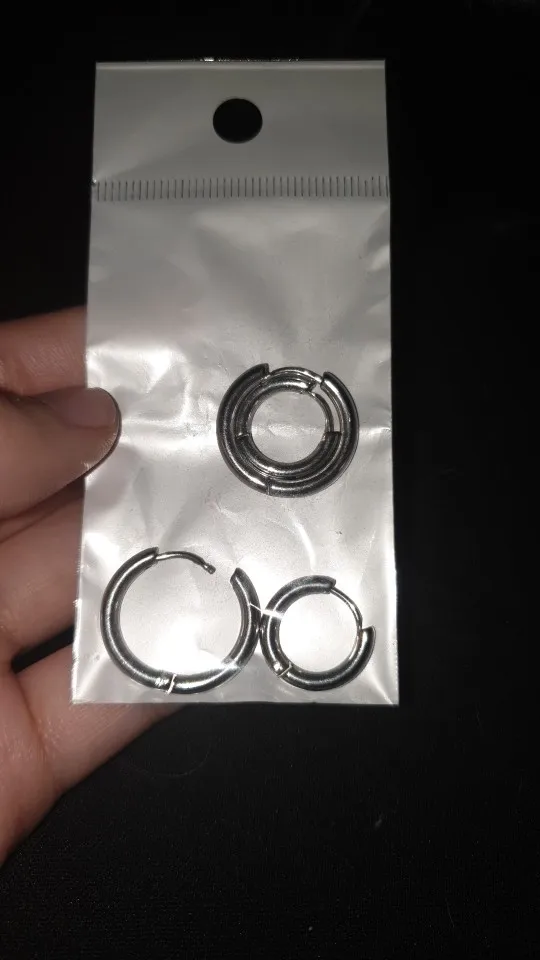 Выглядит точно так же, как на фотографиях! На ощупь крепкий, застежка хорошая и надежная, а серьги еще не потускнели. Эти 14 мм выглядят немного смешно на мне, потому что у меня маленькие уши, но 10 мм отличный!