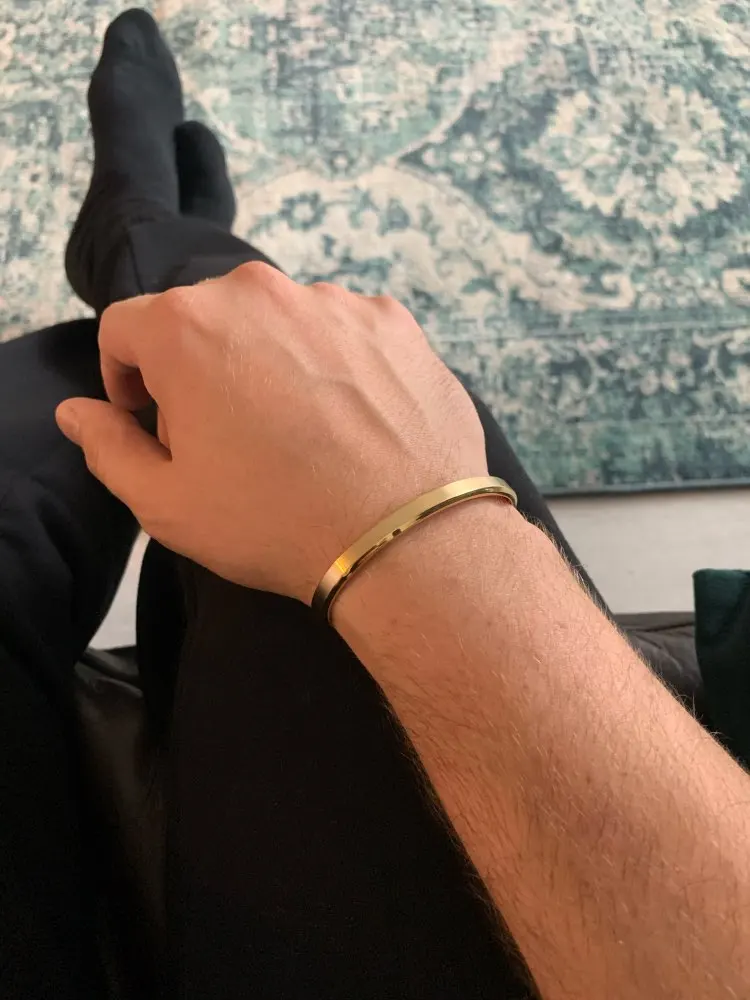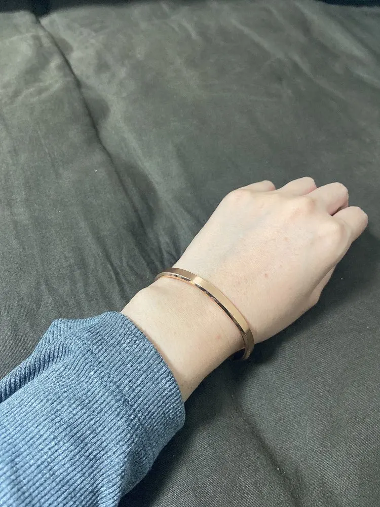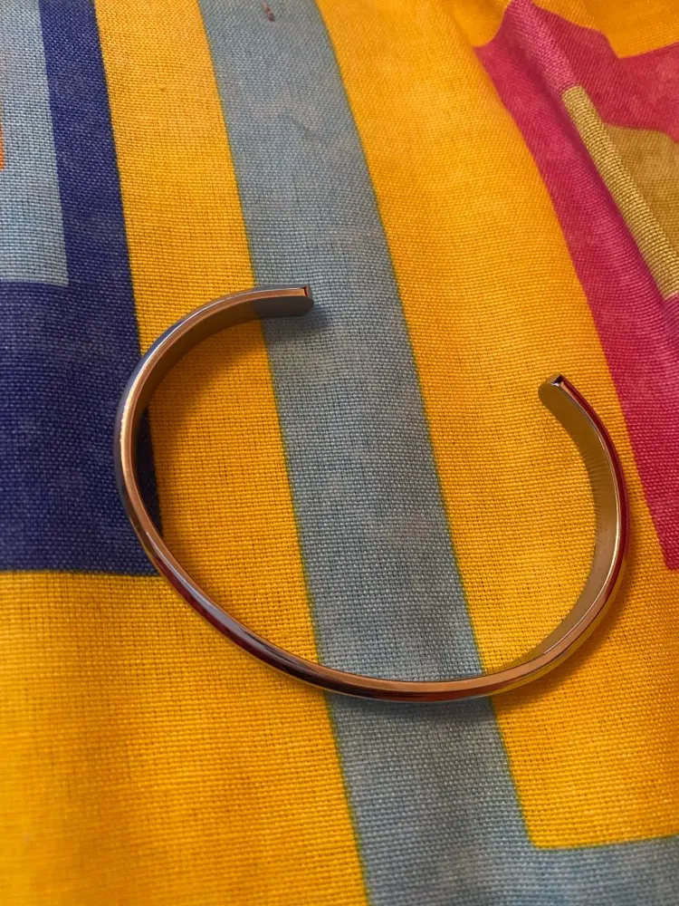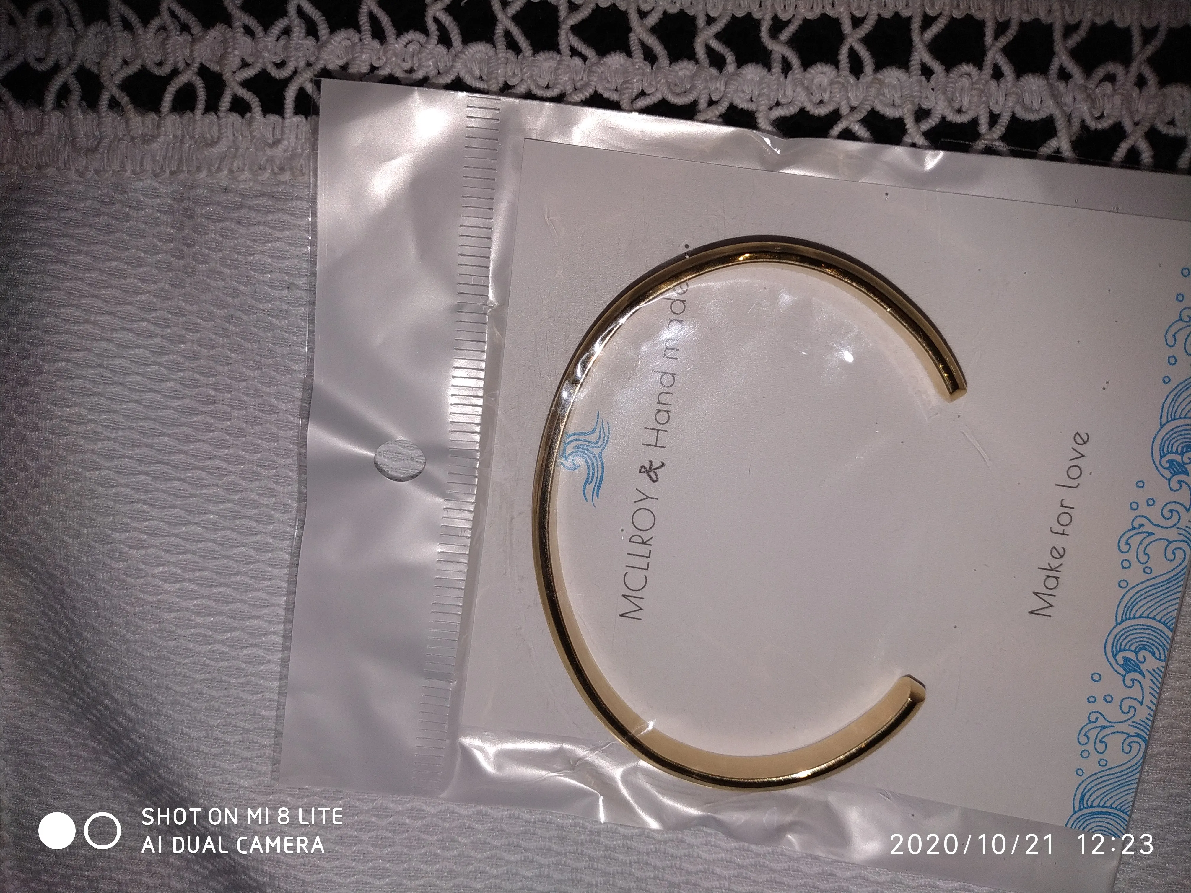 Симпатичный минималистичный браслет. На маленькую женскую руку велик, чтоб не спадал, нужно его слегка сжать и уменьшить.