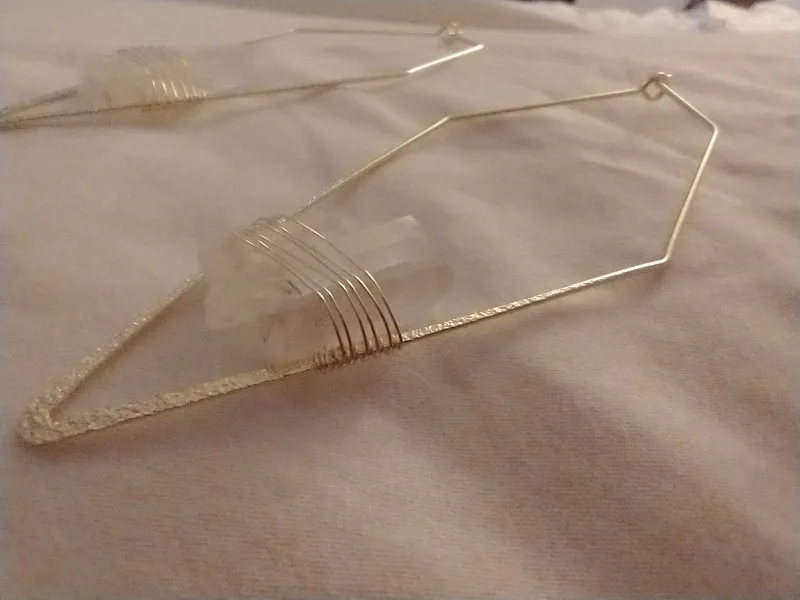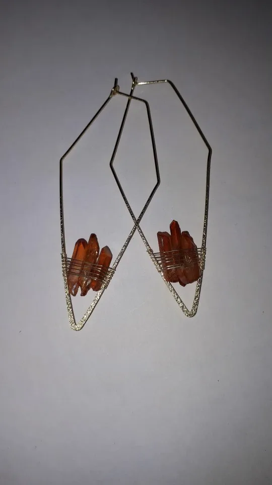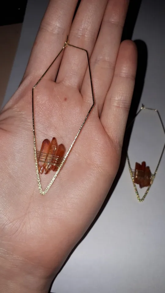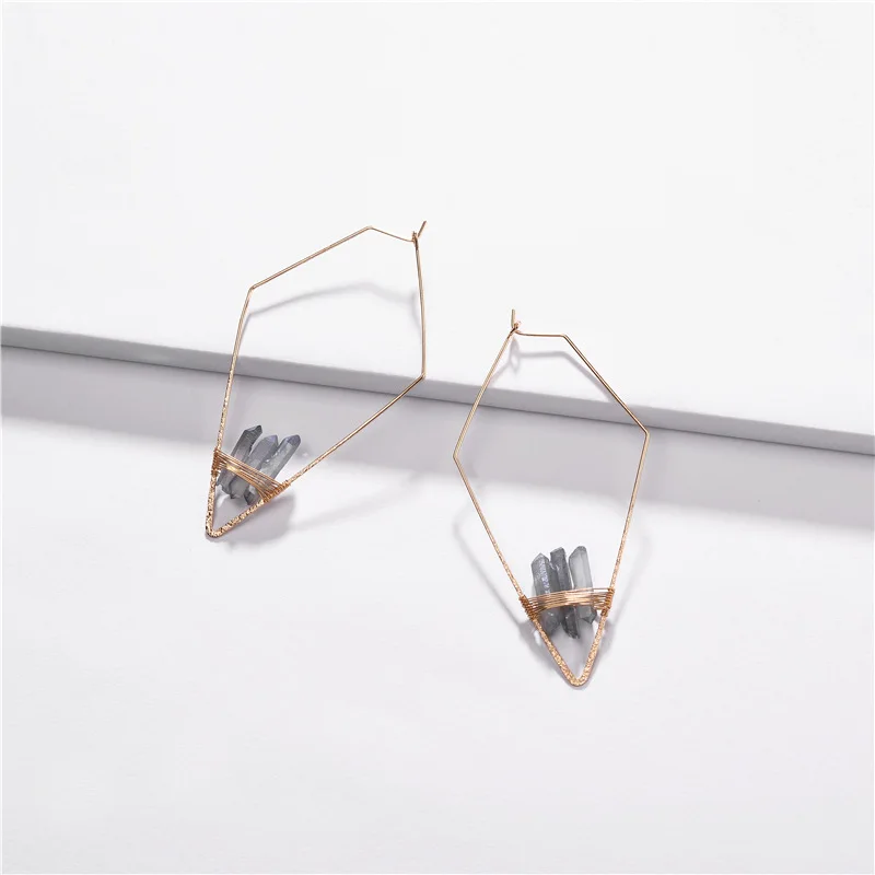 Модные геометрические серьги-кольца с золотым покрытием и ромбовидной медной проволокой, серьги с натуральным кварцевым камнем для женщин