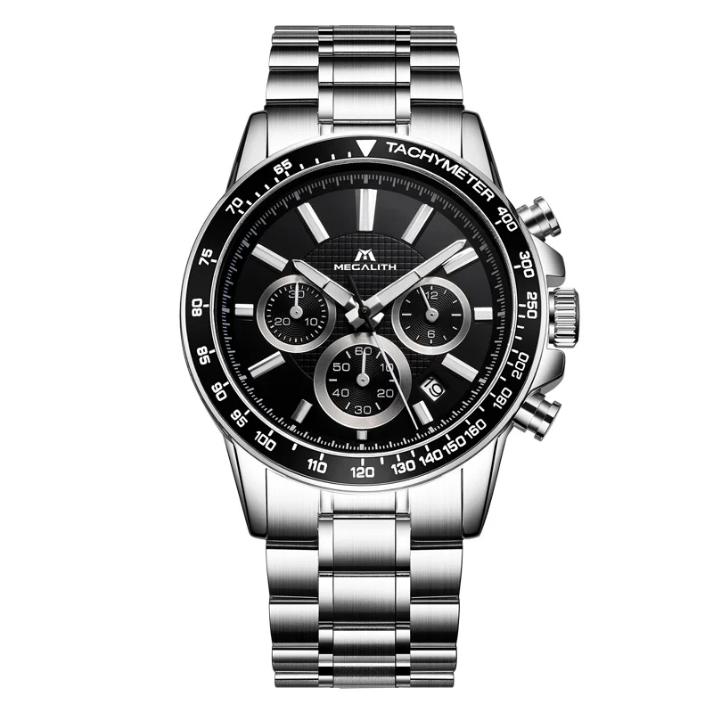 MEGALITH спортивные водонепроницаемые часы со стальным ремешком и х...