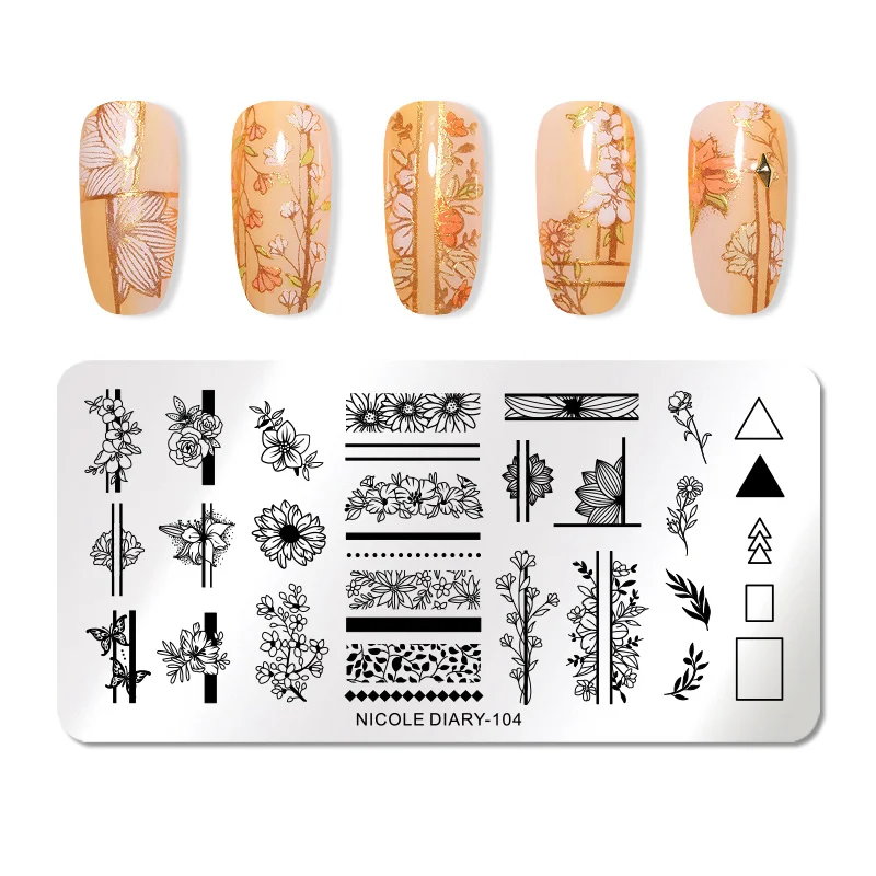 Пластины для стемпинга для ногтей NICOLE DIARY из нержавеющей стали с цветами и изображениями аксессуары для трафаретов