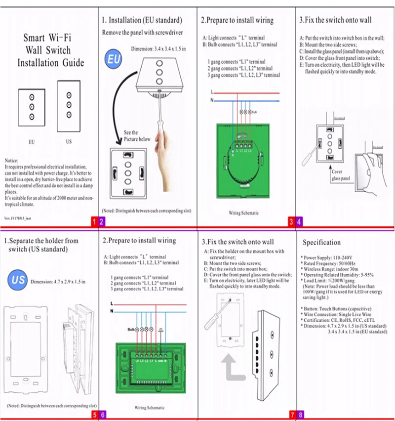 Настенный светильник ключатель света, с поддержкой Wi-Fi, для умног...