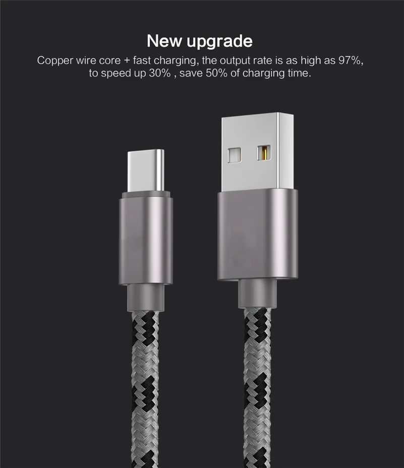 Кабель USB Type-C в оплетке для Samsung S8, S9, S10 Plus, Huawei P3...