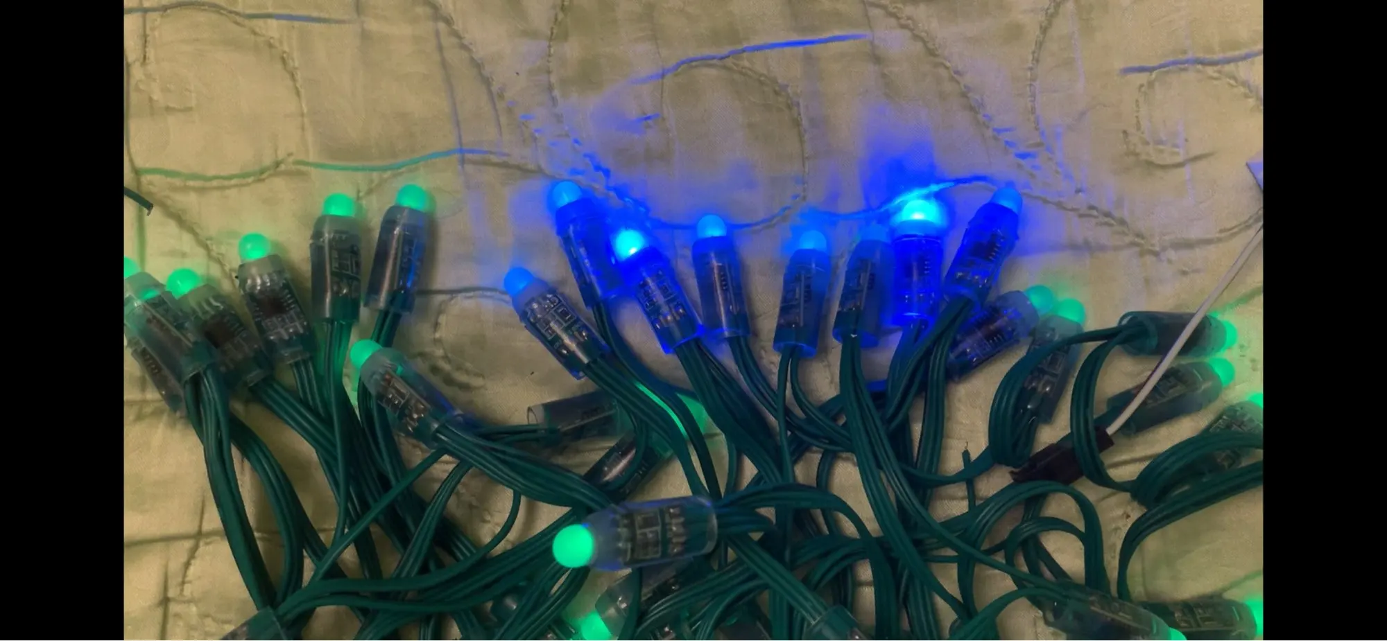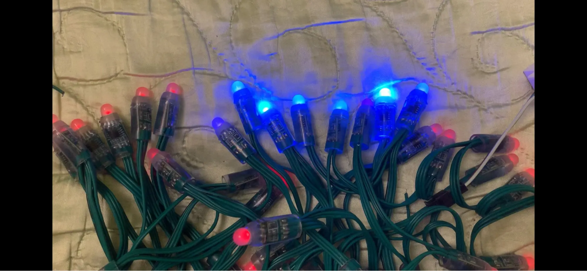 Заказывал 3 светодиодные ленты. Одна оказалась бракованной - 7 пикселей постоянно светятся синим цветом, ещё некоторые иногда помигивают синим. Отправлял продавцу видео сравнения с рабочей светодиодной лентой, им же присланной. Договориться не получилось, открыл спор, по решению дополню отзыв. На фото неисправные пиксели.