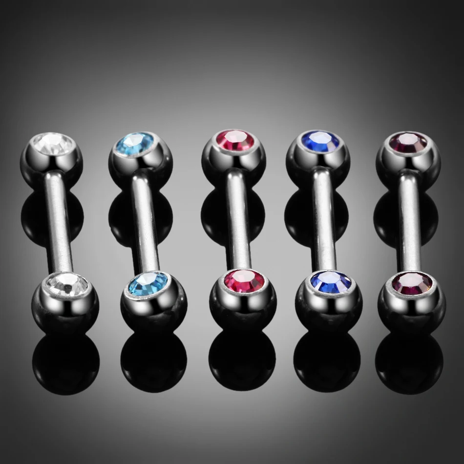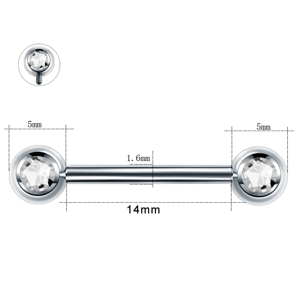 Штанга для пирсинга в язык Mamilo из титана, 1 шт., прямая штанга, кристалл, пирсинг для бровей, кольцо для сосков, сексуальные женские Украшения, 14 г