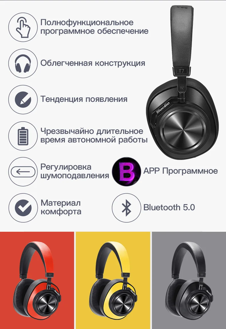 Bluetooth-наушники Bluedio T7 с активным шумоподавлением, беспровод...