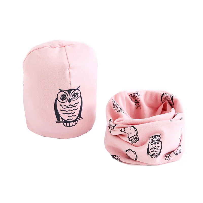 Шапка и шарф Детские, осенне-зимние, из хлопка, с изображением совы...