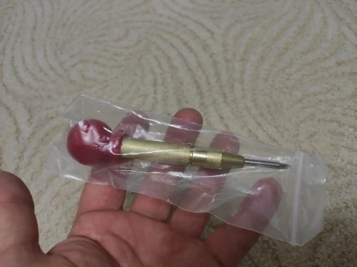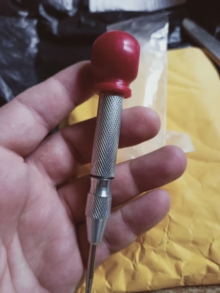 Пришло достаточно быстро. Описанию соответствует. Ст3 кернит хорошо. Желательно подточить, но и так работает. Если отметка покажется не достаточно глубокой, то по нанесённому следу легко накернить более твёрдым керном и молотком. Короче свои функции выполняет.