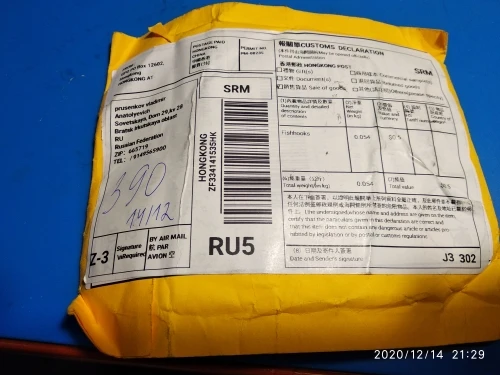 Страна: RS Color: E Model Number: 21g Доставка: Cainiao Super Economy 07.12.2020