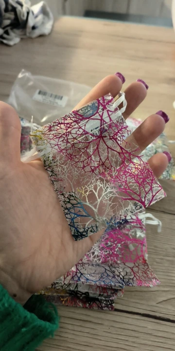 Сумки действительно красивые и соответствуют описанию. Прибыл примерно на 13 дней раньше запланированной даты. Маленький, просто положить только 5 конфетти так, как я хотел, так что я смогу положить их в коробки сувениров. Очень доволен