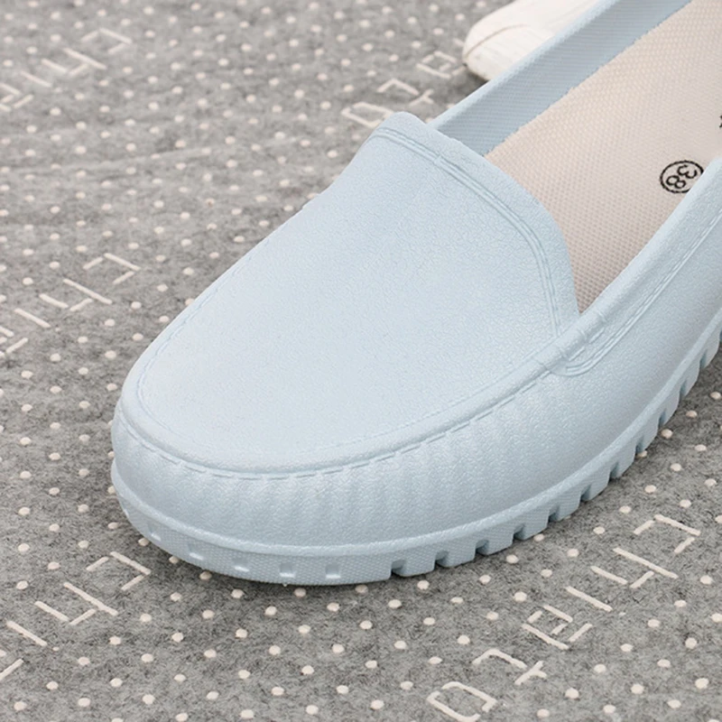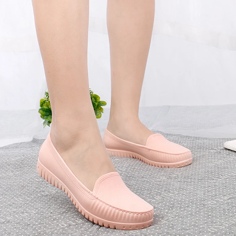 Женские резиновые туфли, лето 2019, водонепроницаемая обувь на плоской подошве из ПВХ для женщин, яркие цвета, нескользящая повседневная женская обувь, весенняя обувь на плоской подошве