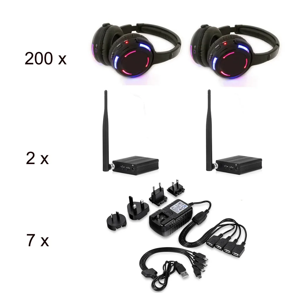 Бесшумные светодиодсветодиодный наушники с 2 передатчиками, 3 канала, 200 шт.