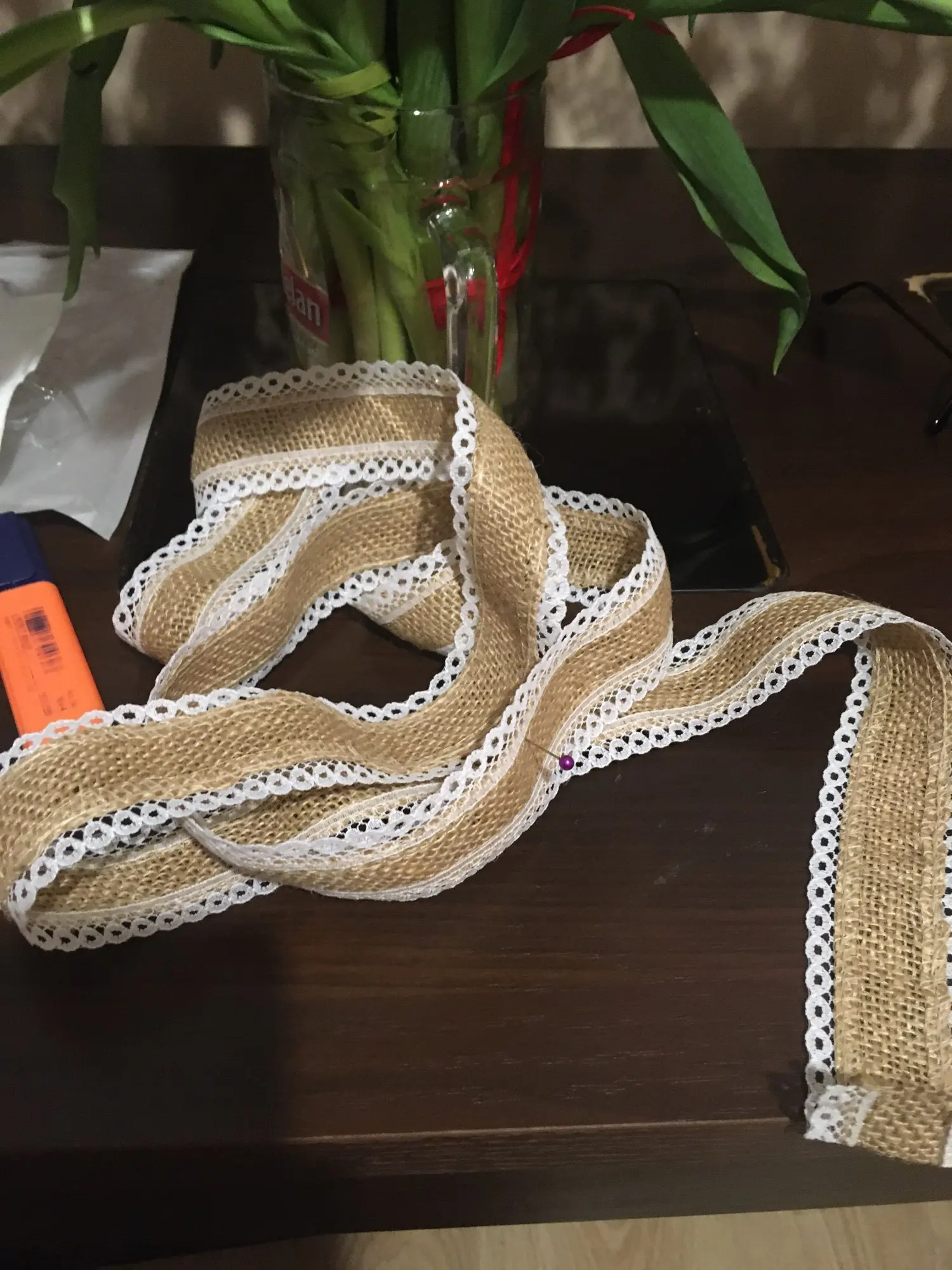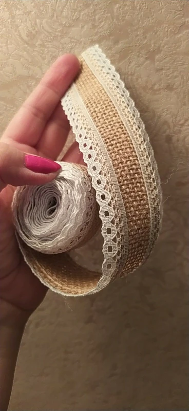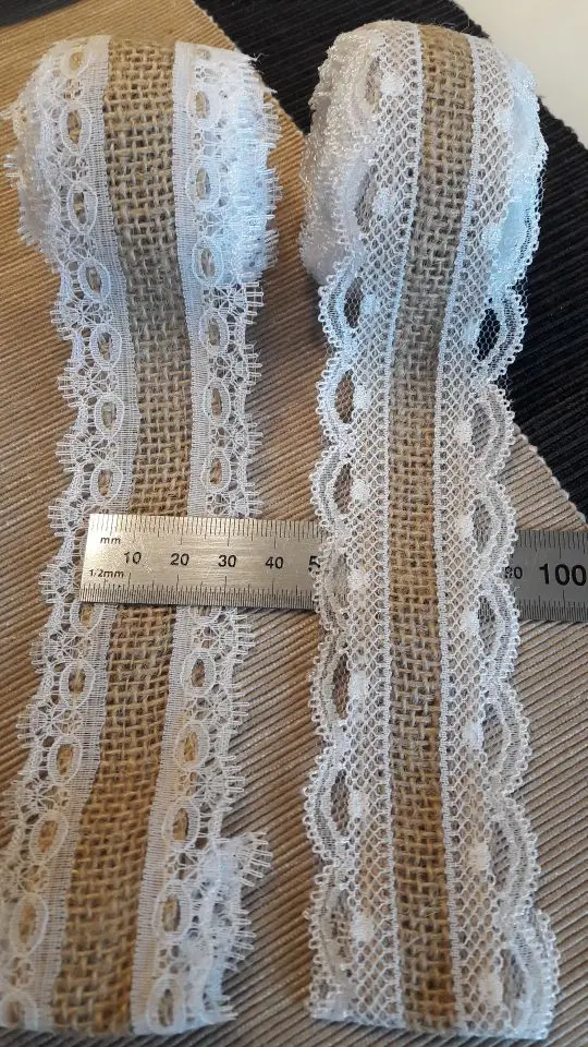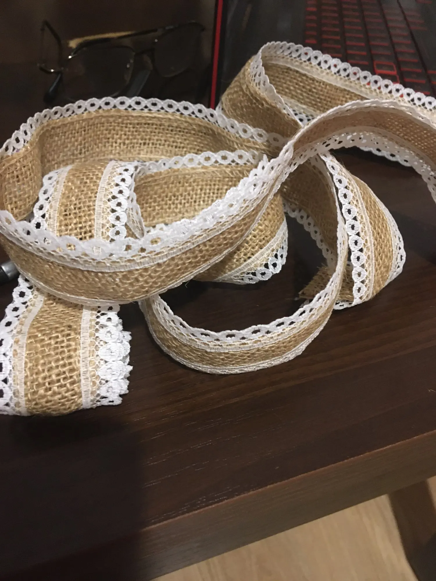 2 млот, 25 мм, натуральная джутовая лента из искусственной кожи с белой кружевной отделкой, оформление искусственных орнаментов