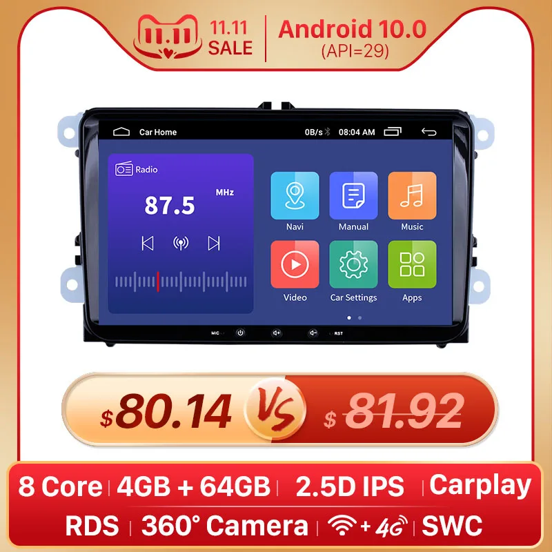 Автомагнитола Seicane 2Din, мультимедийный плеер на платформе Android 10 для VWVolkswagenGolfPoloTiguanPassatb7b6SEATleonSkodaOctavia с GPS