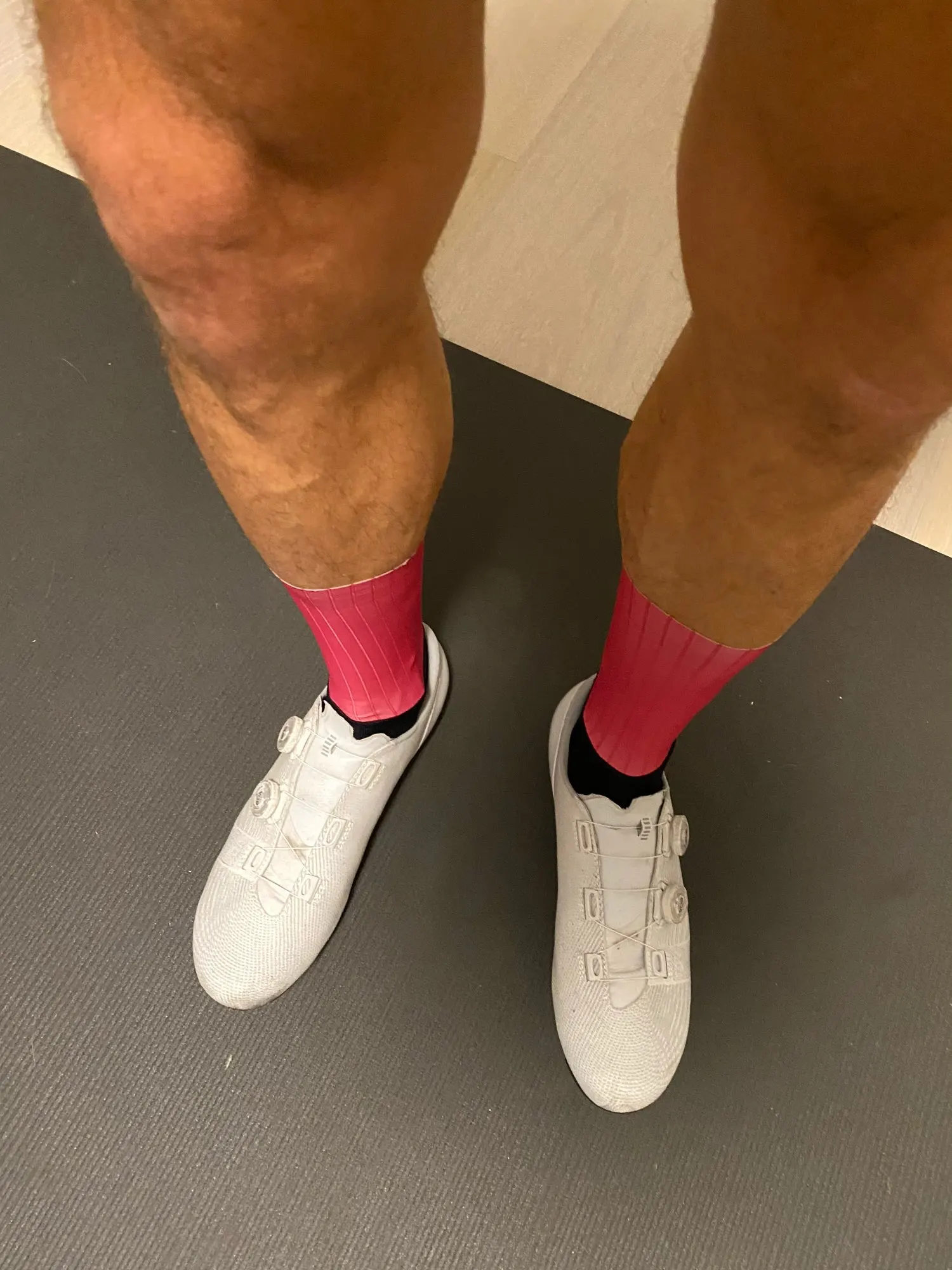 생각보다 윗쪽재질이 무게감이있네요. 살에 달라붙는 느낌이고 맨윗단에 실리콘이 있어서 흘러내리지 않습니다.