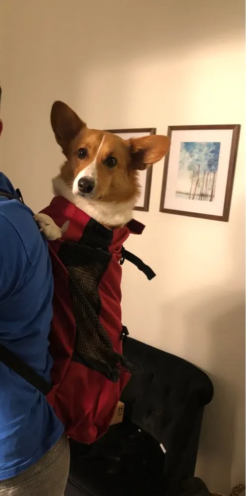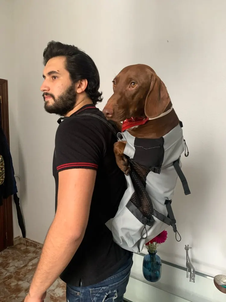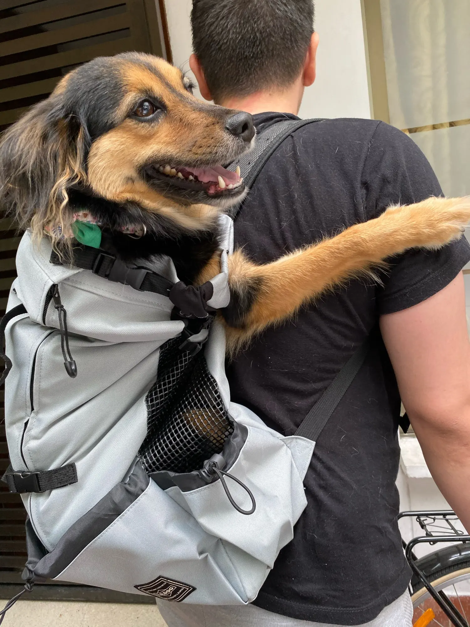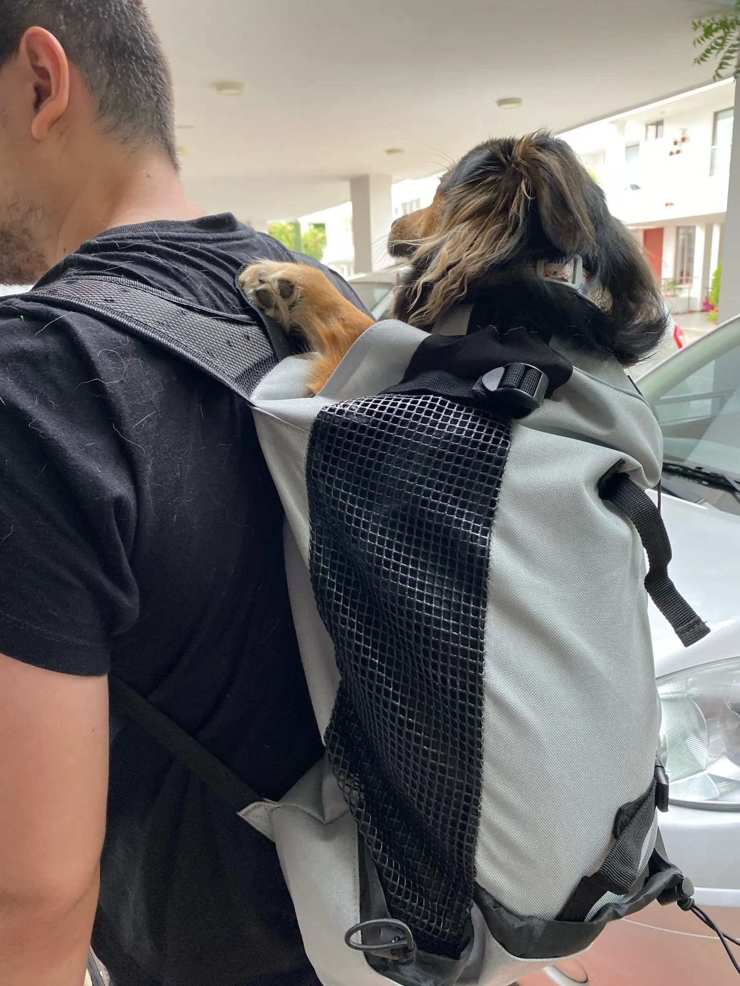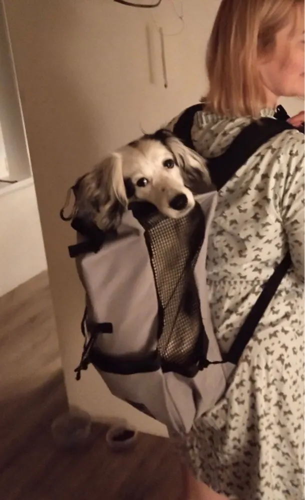 Отличный рюкзак... Бит большой для 7,5 кг spicc/dachshound mix