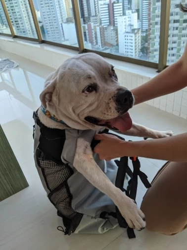 У нас есть трехногая собака (плюшевый), которая теряется на длинных прогулок, так что это идеально, и ему нравится носить с собой. Качество очень хорошее и хорошо сделано, мы Прислали XL, который хорошо подходит для cockapoo, и доставка была очень быстрой