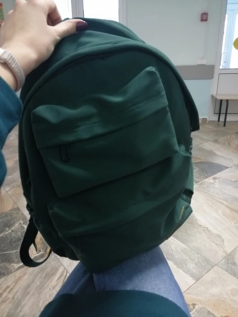 очень приятный на ощупь рюкзак. просто бомбезный. много кармашков внутри. два спереди. лямки удобные. выдержал испытание походом за продуктами. :) цветом довольна. цвет более точно передан на фото с логотипом с кармашка переднего, хотя на остальных он больше похож на зелёнку, что было бы идеально, будь он действительно таким. в общем и целом - определенно рекомендую к приобретению