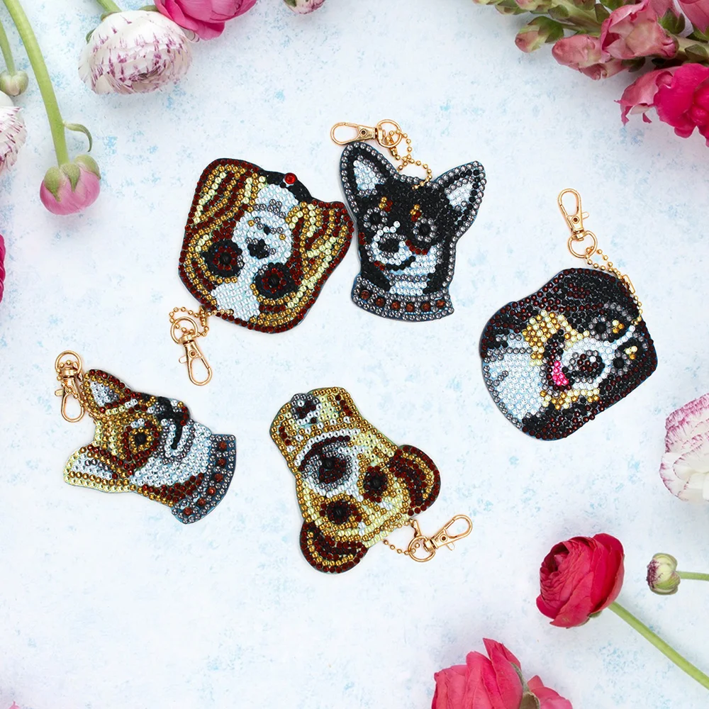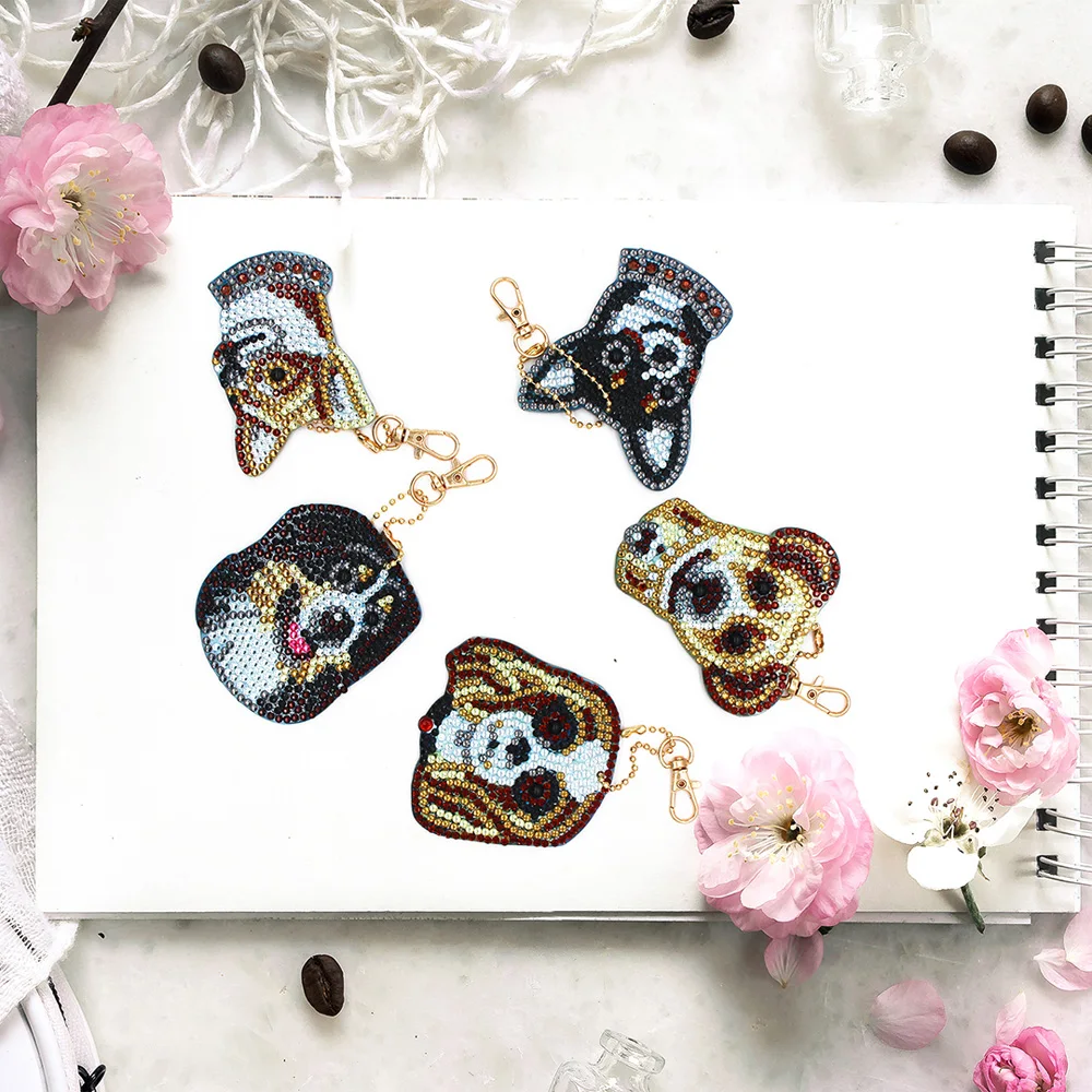 Кольцо для ключей с алмазной вышивкой в виде собаки, 5 шт.