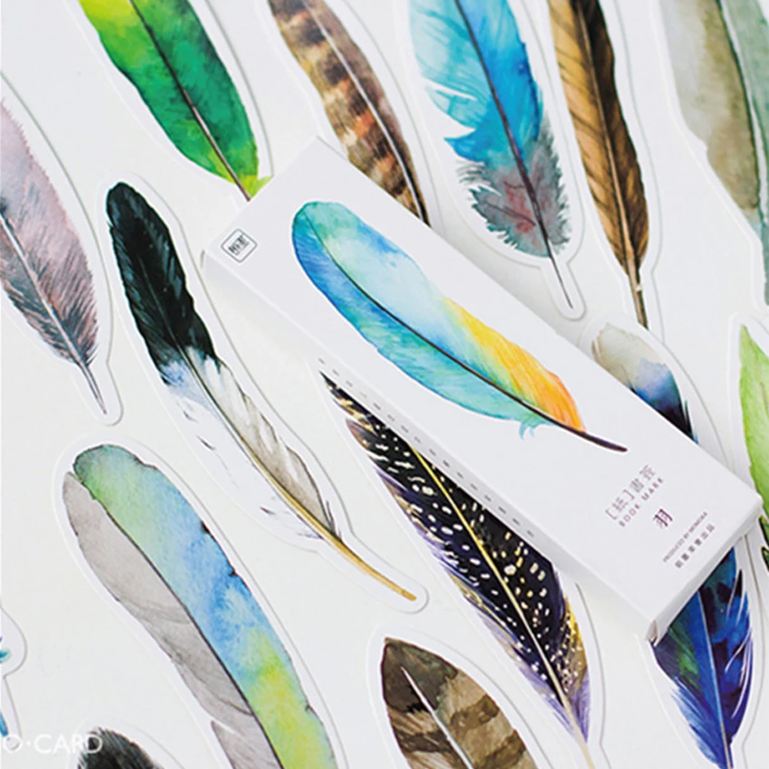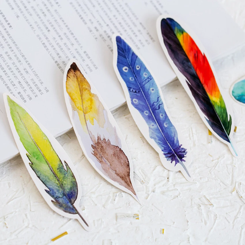 30 шт.лот, милая разноцветная бумажная Закладка с перьями, птицы на память, Закладка для книг, маркеров, подарков, школьных и офисных принадлежностей