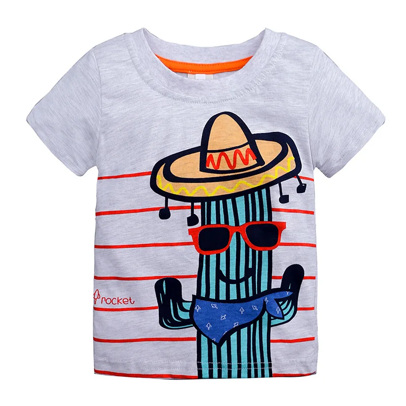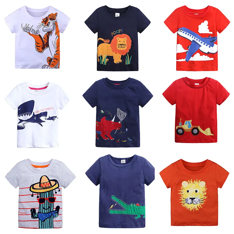 Хлопковая футболка для мальчиков, новая летняя футболка с коротким рукавом и мультяшным принтом животных для детей, футболка для мальчиков, топы для девочек