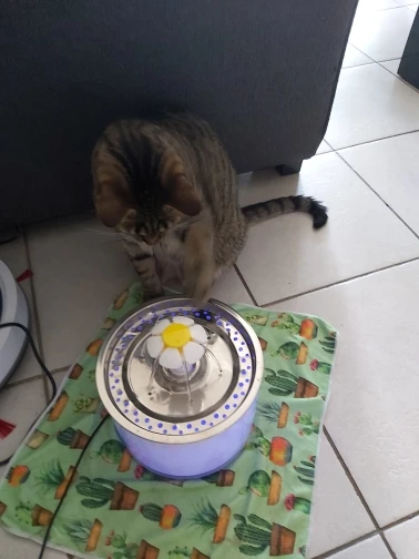 фонтан постоянно работает без остановки. кошка пока интереса не проявила