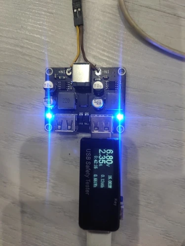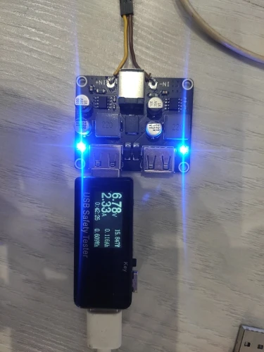 Качественная плата, не дешман. Проверен в работе в авто - заряжает, работает быстрая зарядка, по размерам очень компактный, как две флешки, можно спрятать под панель. Недостаток- один из портов USB впаян криво, с перекосом, но работает нормально.