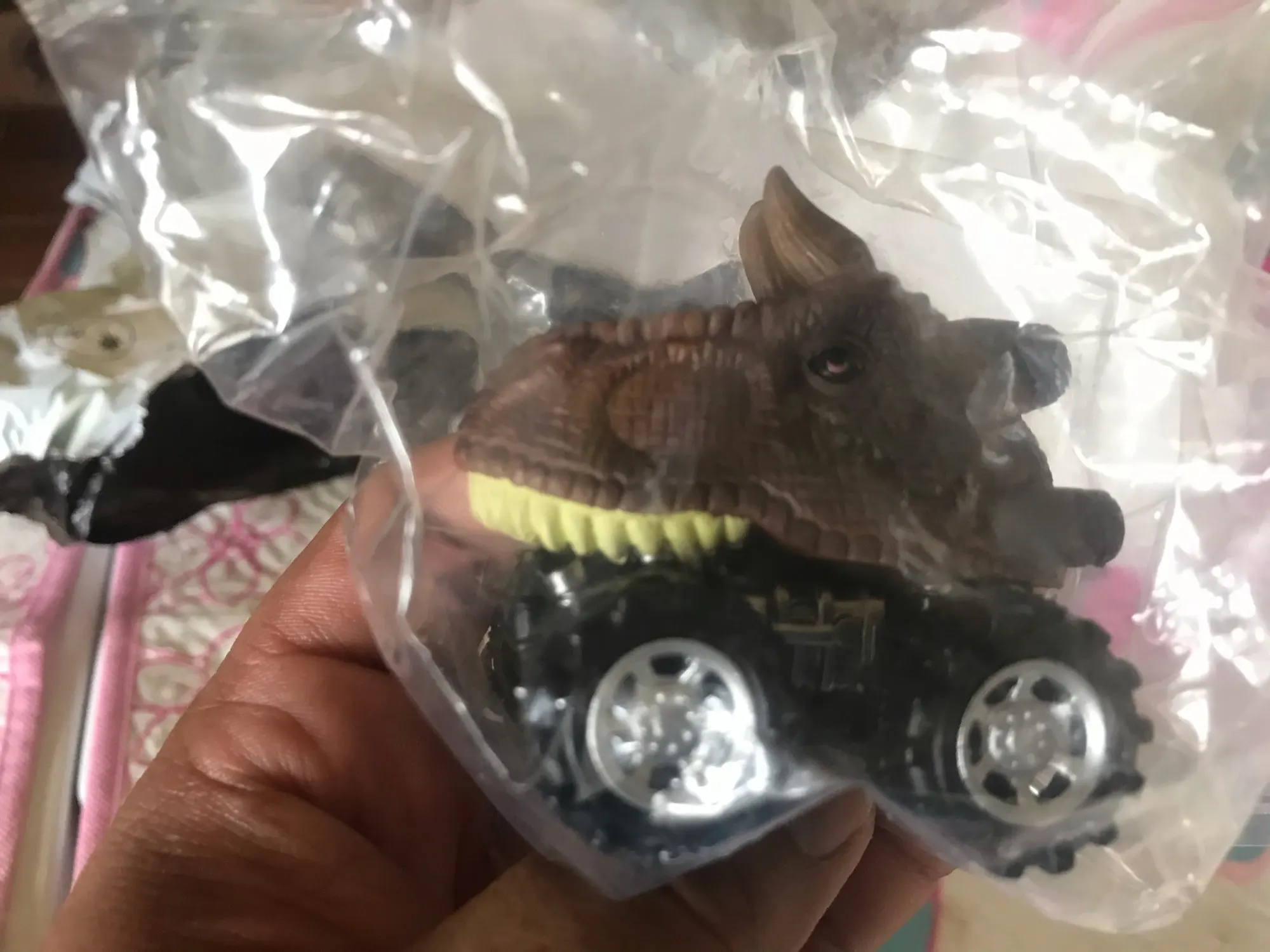 Машинка крутая. Небольшая, но тираннозавр, как настоящий. Продавец отправил быстро и упаковал все в пупырчатую пленку, чтобы не сломалась.