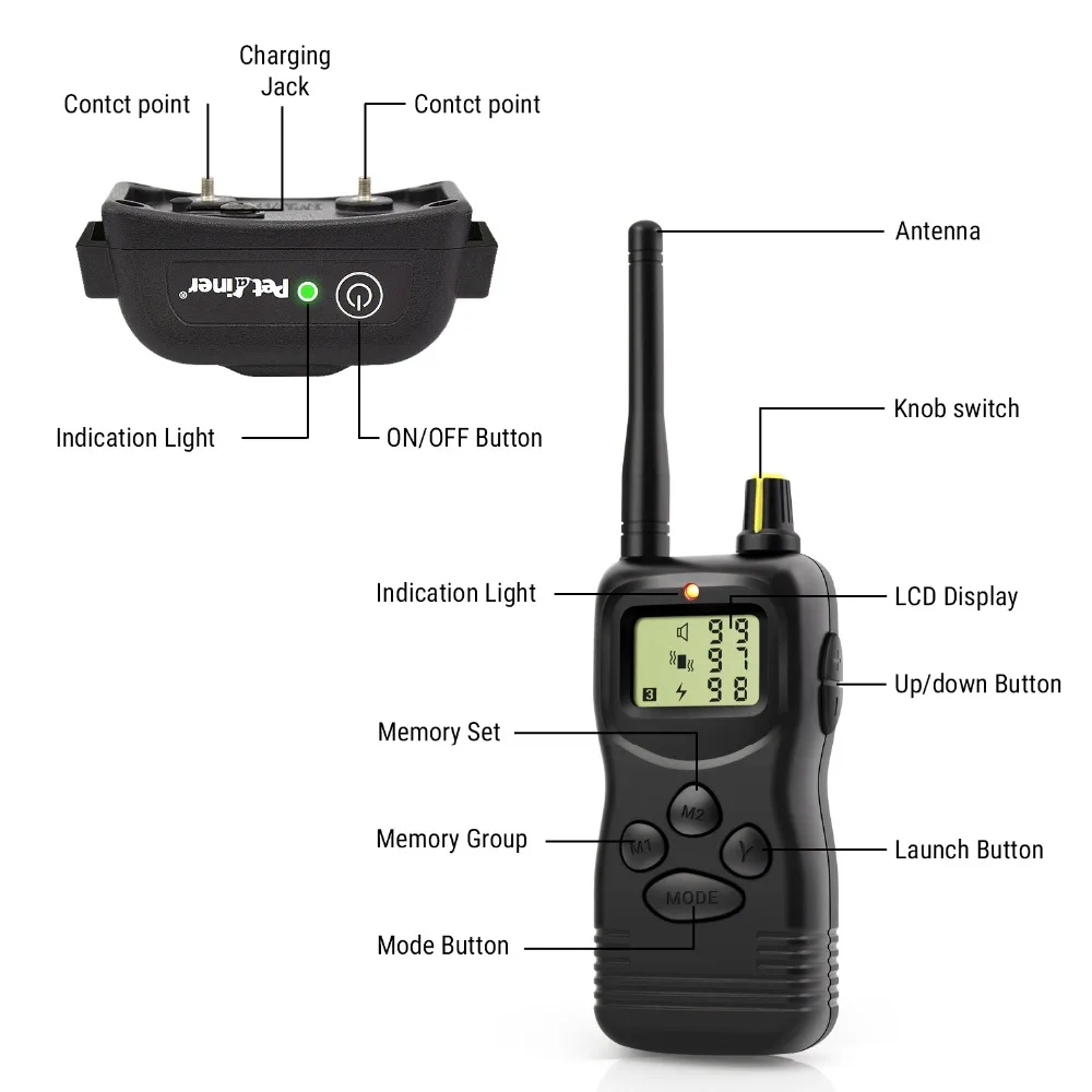 Petrainer 900B-2 1000 измеритель перезаряжаемый водонепроницаемый ошейник для дрессировки собак для 2 собак