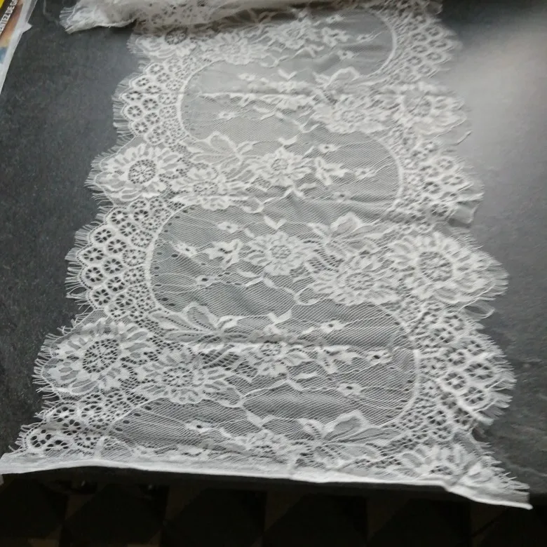 очень нежное кружево. длинна 3 метра. на красной скатерти смотрится очень красиво. доставка пару недель до МО.