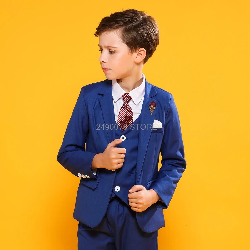 Строгие школьные костюмы с цветочным рисунком для мальчиков на свадьбу, куртка для мальчиков, рубашка, жилет, штаны, галстук, 5 шт., детский смокинг, навечерние ное платье, комплект одежды