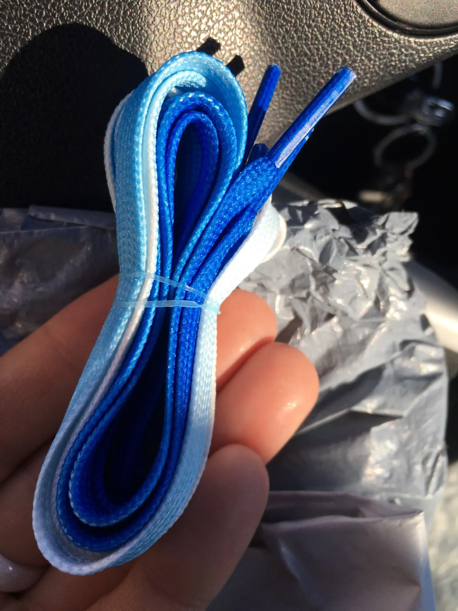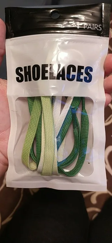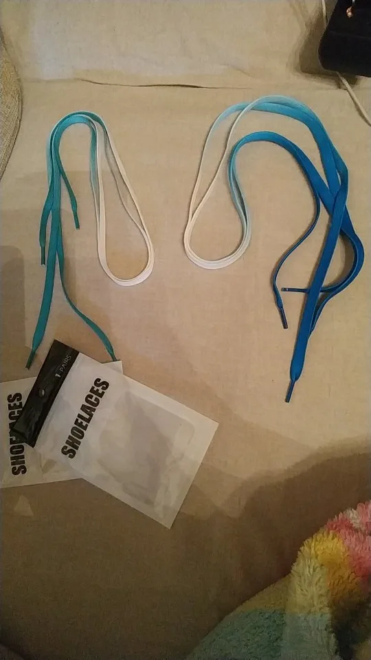 Шнурки дошли очень быстро в Минск. Цвет отличается от фото, т.к. на фото нежно салатовые с переходом на белый, а пришли ярко зелёные с переходом в жёлтый, а потом в белый. Но мне всё равно очень нравится.