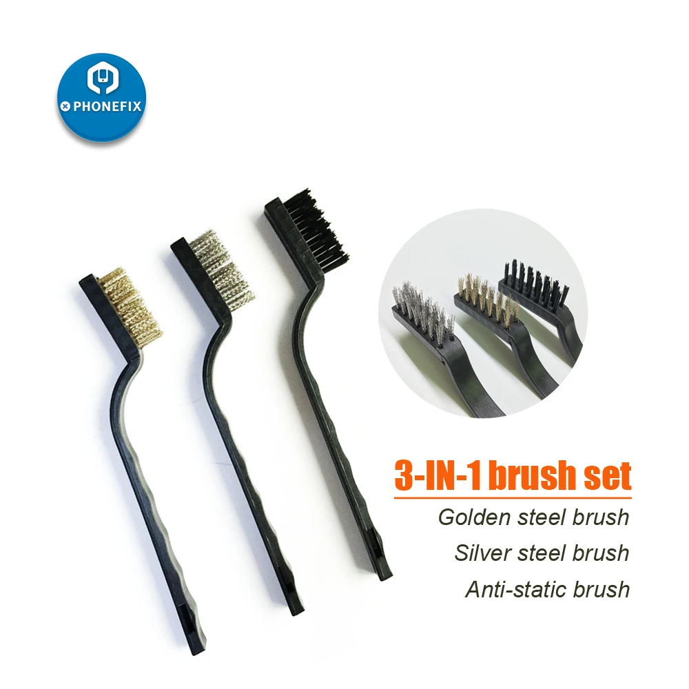 PHONEFIX 3 в 1 многоцелевая Антистатическая щетка для удаления флюсовой пасты стальная Щетка для Мобильный телефон планшета ноутбука PCB BGA инструмент для ремонта
