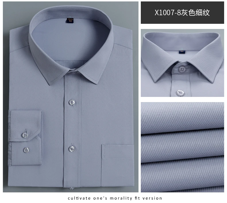 Мужская Однотонная рубашка с длинными рукавами, белаясерая формальная Классическая рубашка из Твила, с нагрудным карманом, не требует особого ухода, летовесна
