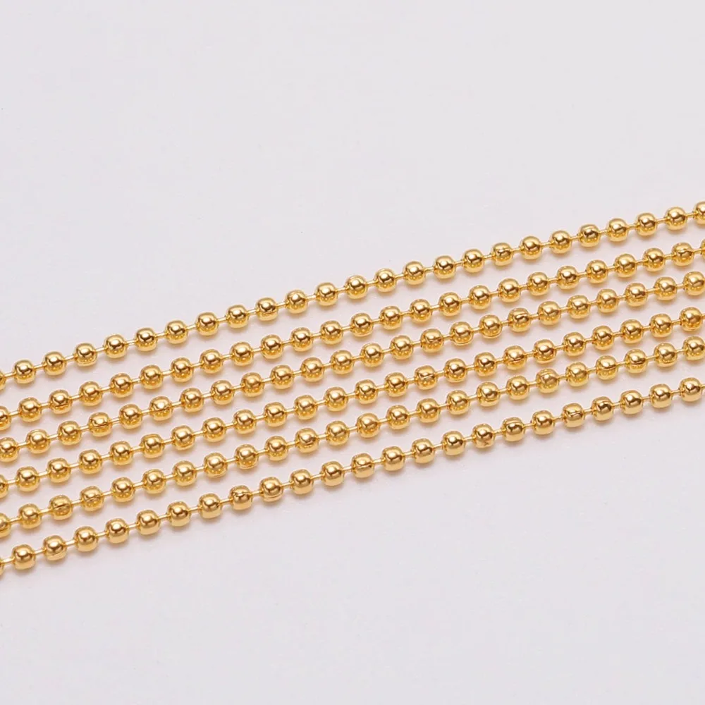 Цепочка с металлическими шариками, 5 млот, 1,2, 1,5, 2 мм, золотыеч...