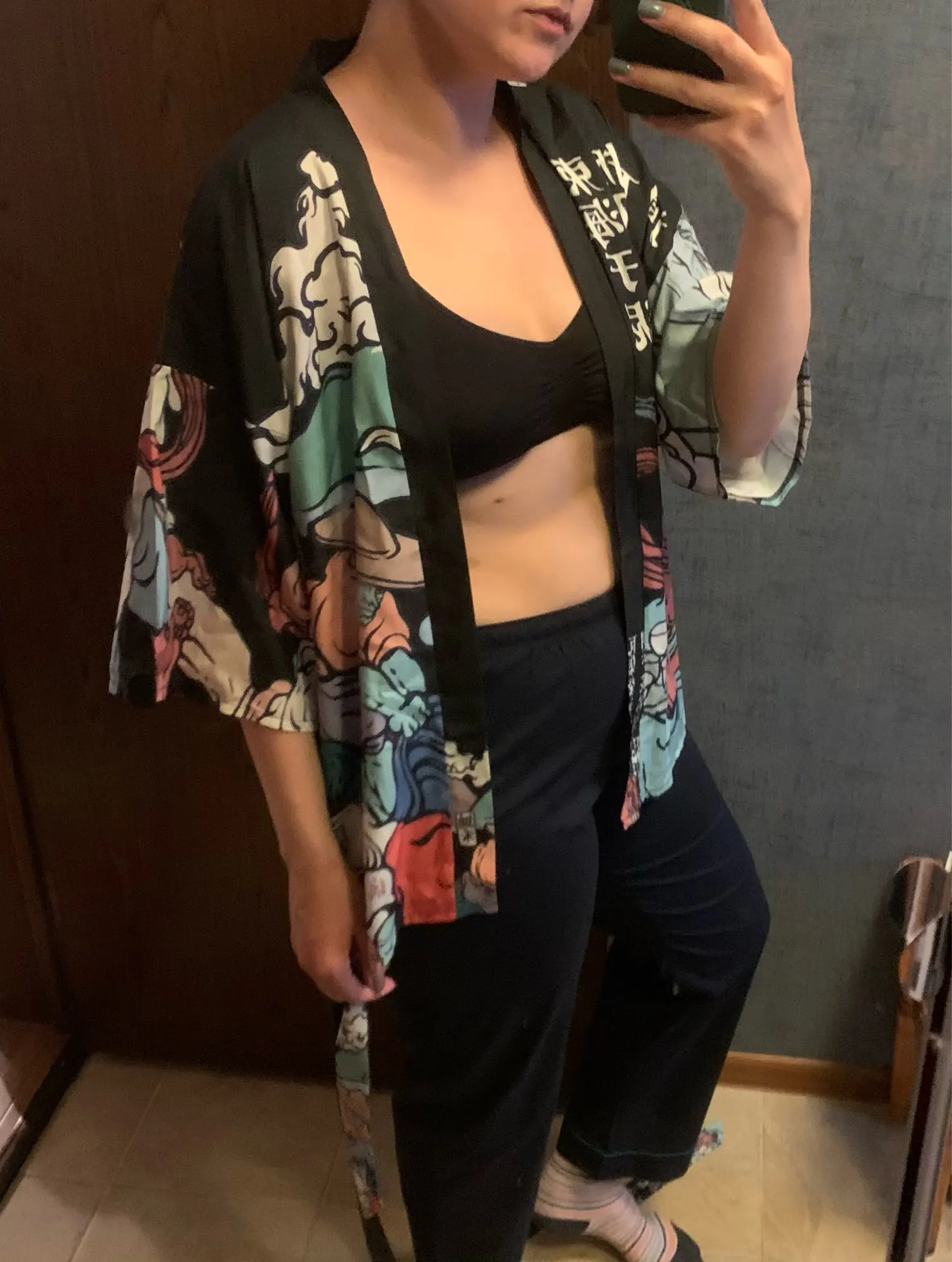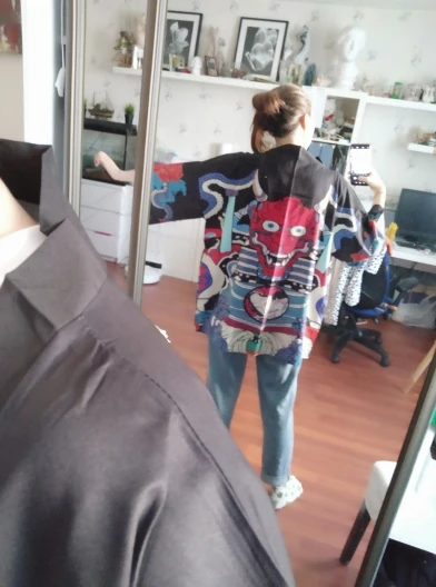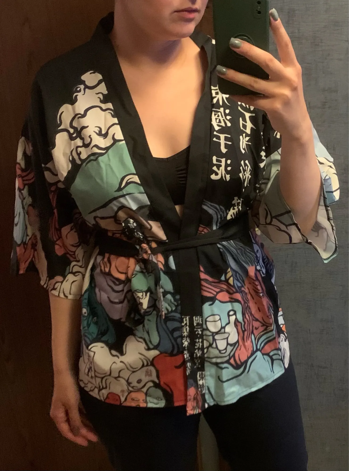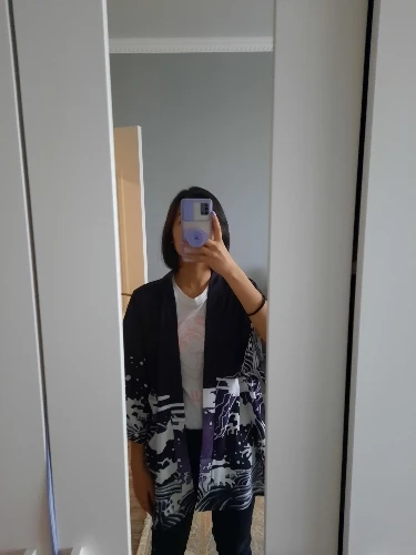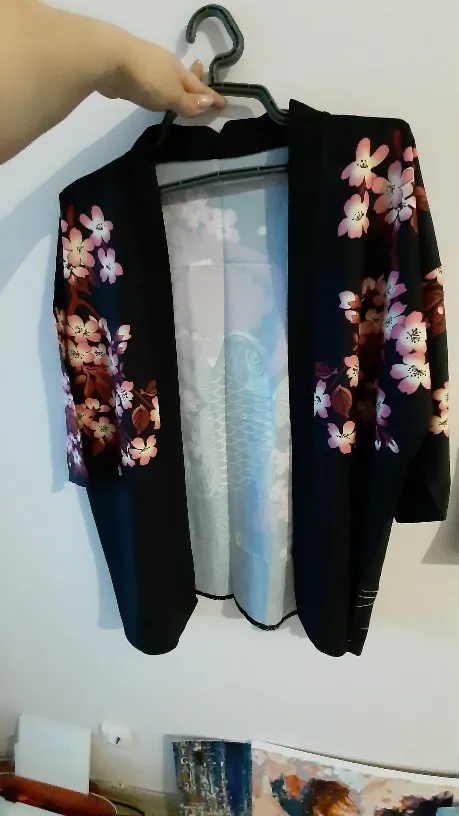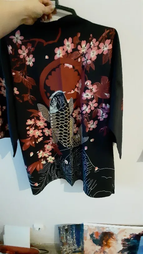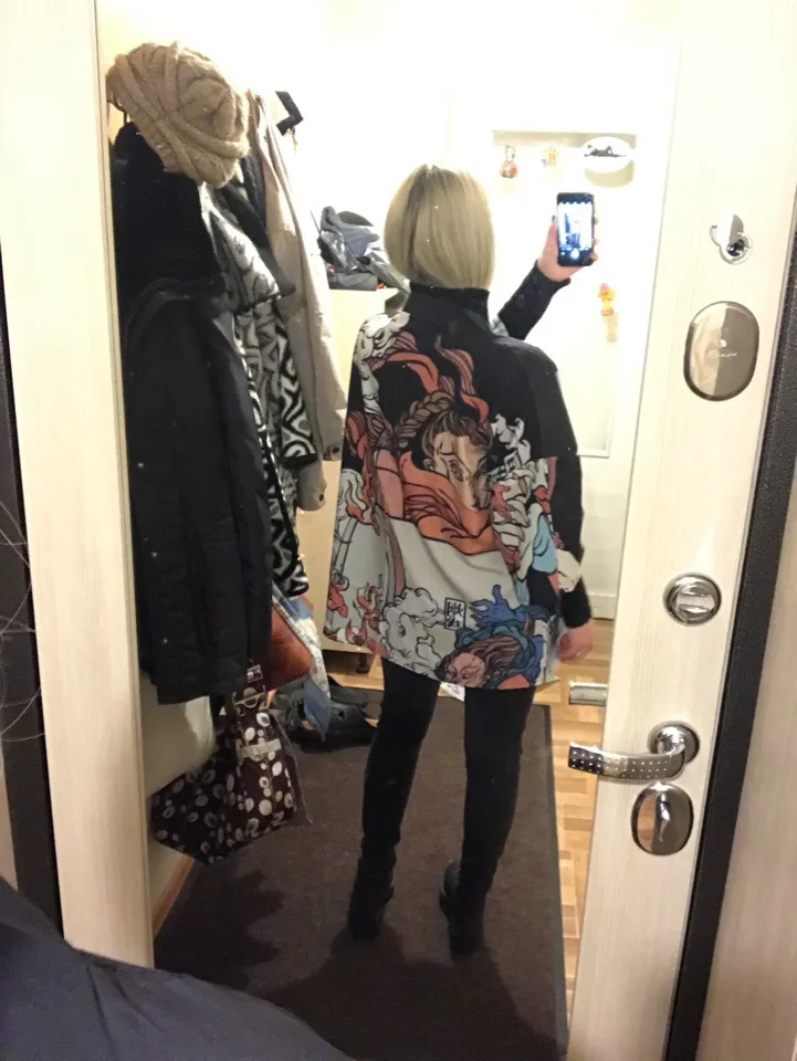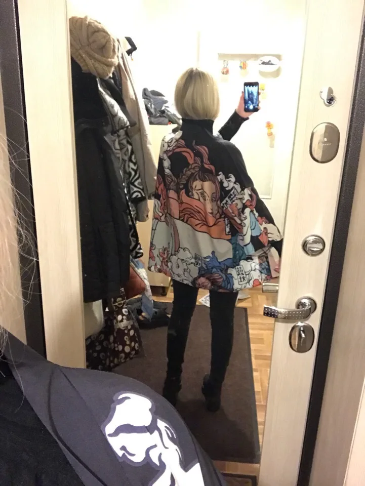 Хаори просто великолепный! Вы можете видеть длину рукава на рост 178 + прикрывает зад, если это важно для вас. Рисунок чёткий, яркий (это моя камера сшакалила сильно). Мне очень понравилась вещь, рекомендую! В Волгоградскую область пришло за 11 дней, это очень быстро. Продавцу 5+