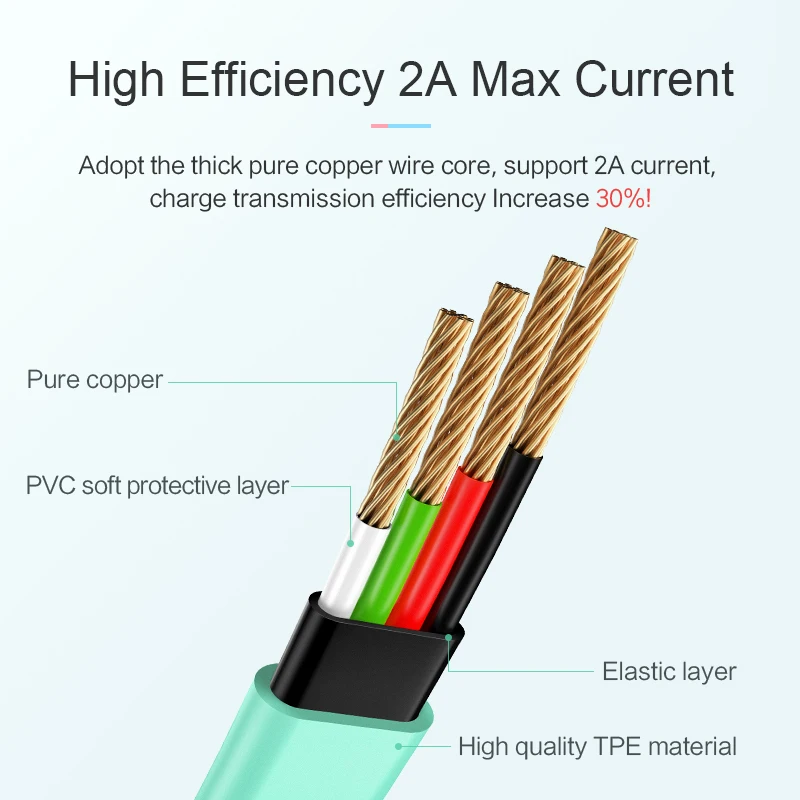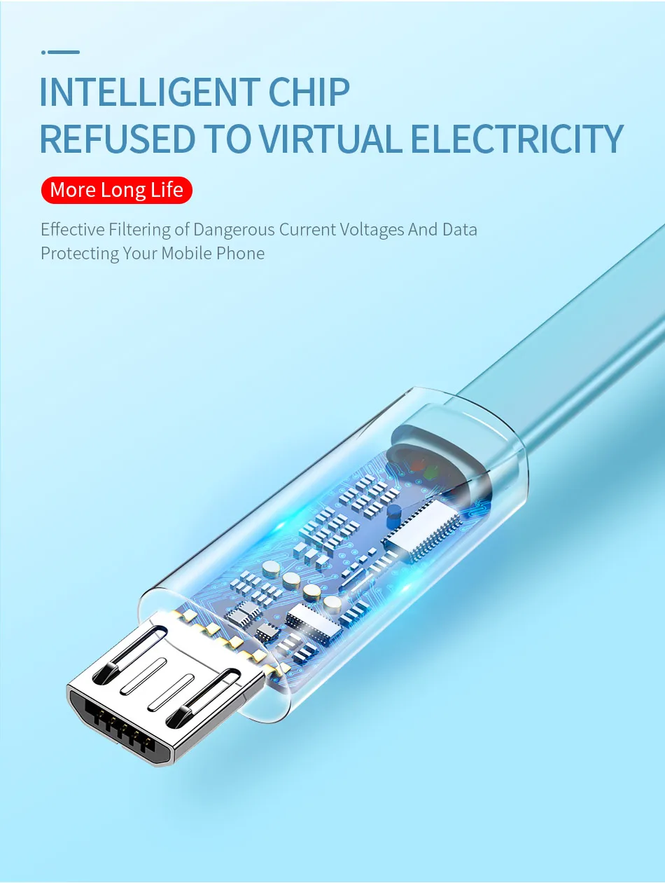 Плоский кабель Micro usb USAMS 1,2 m 2m 2A кабель передачи данных д...