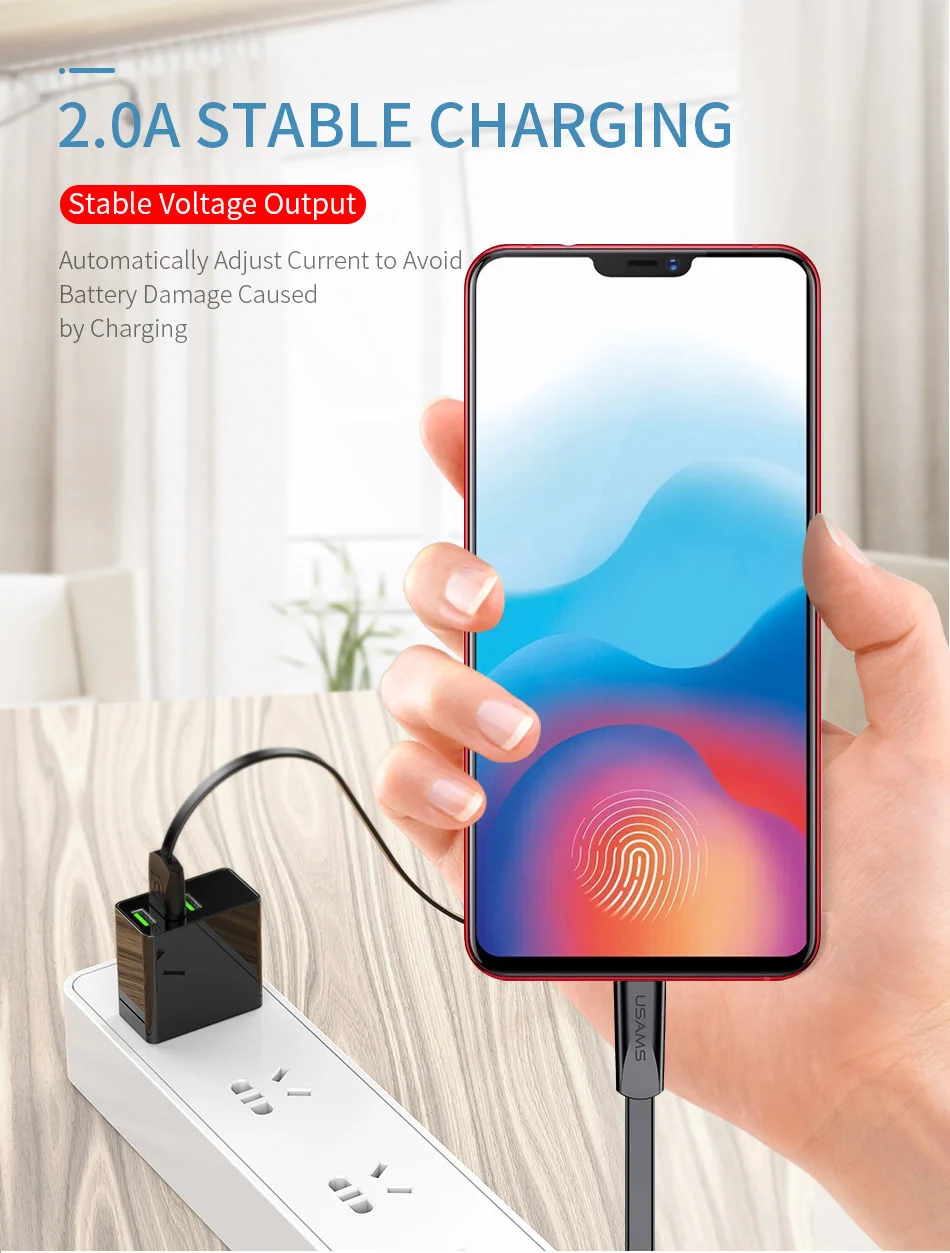 USAMS 2A кабель Micro USB для быстрой зарядки, Кабель microusb для синхронизации данных для Samsung Xiaomi Huawei Android кабель для мобильного телефона micro шнур