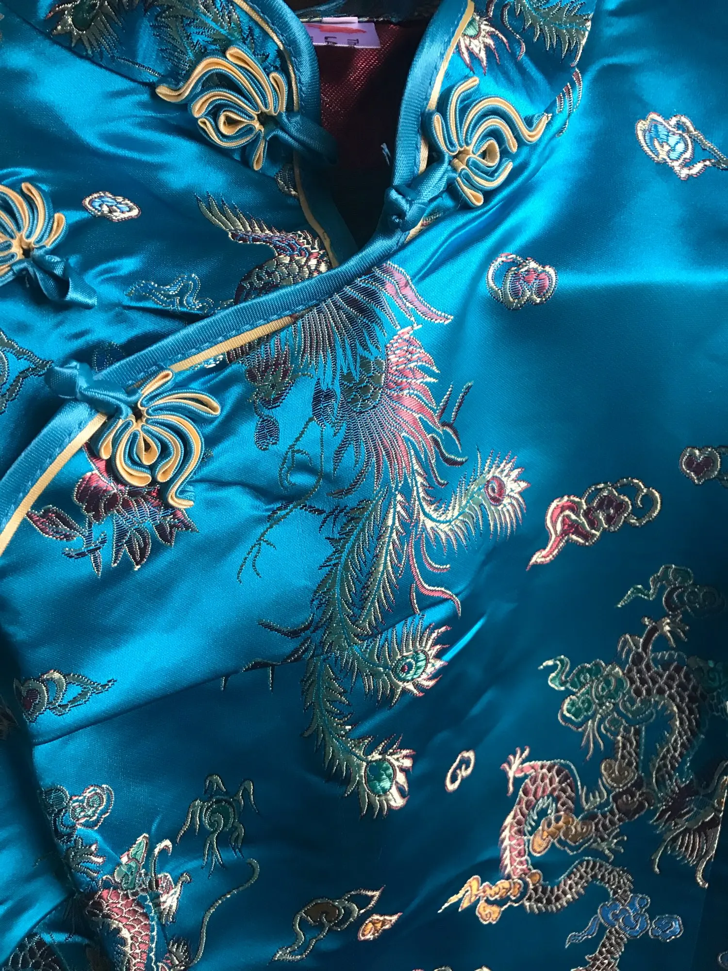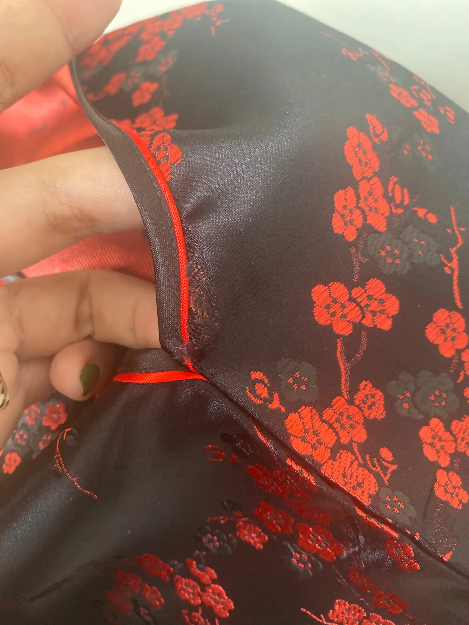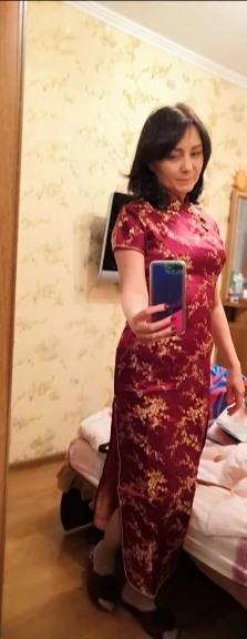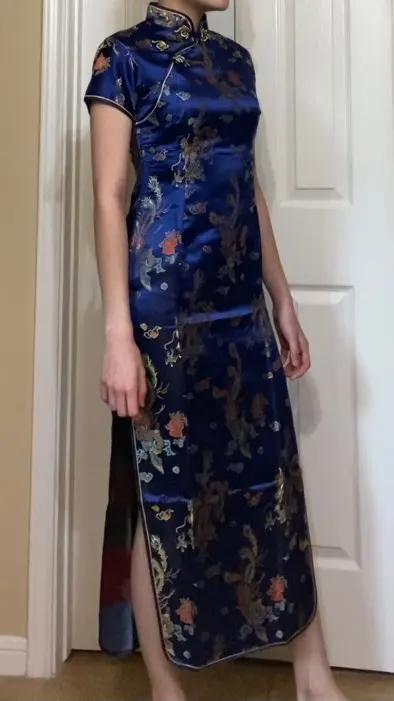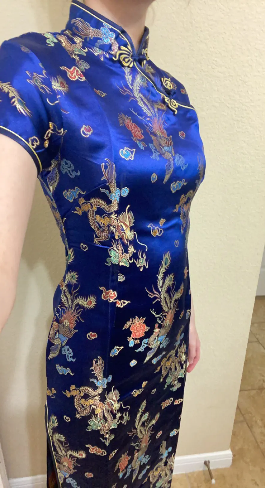 Ткань отличная и приятная, но размер по моему опыту неточен. Я бы порекомендовал посмотреть таблицу размеров и, возможно, увеличить размер. Кроме того, это хороший Ципао!