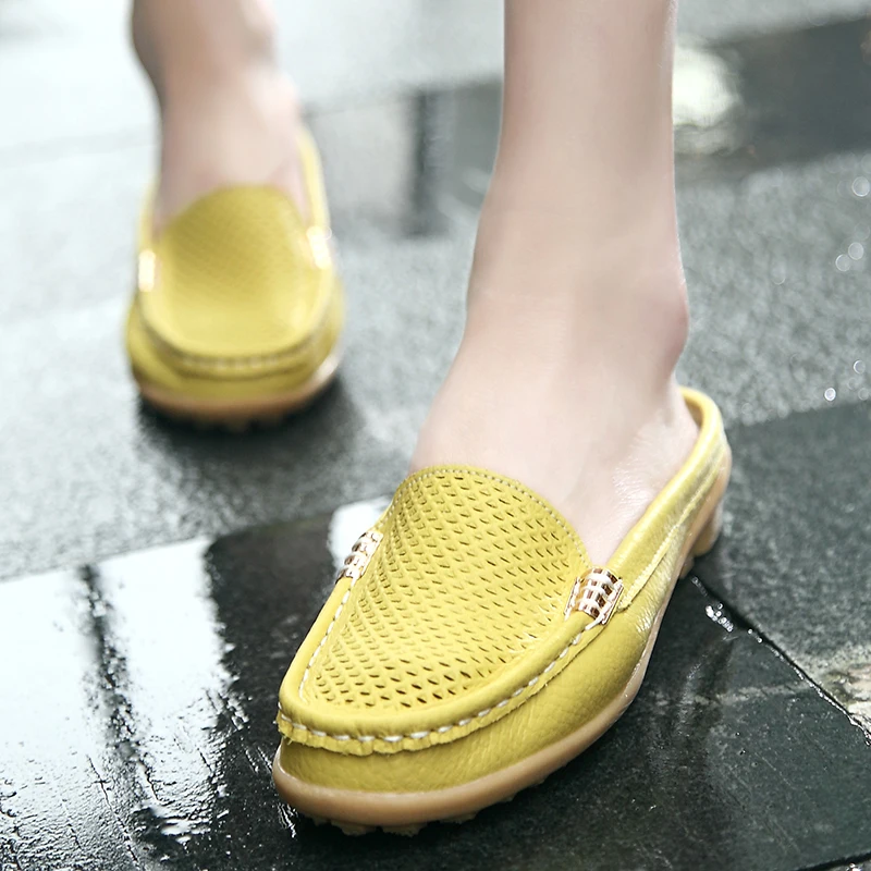 Шлепанцы женские кожаные, черные, белые, желтые, 35-41, для лета, размера плюс