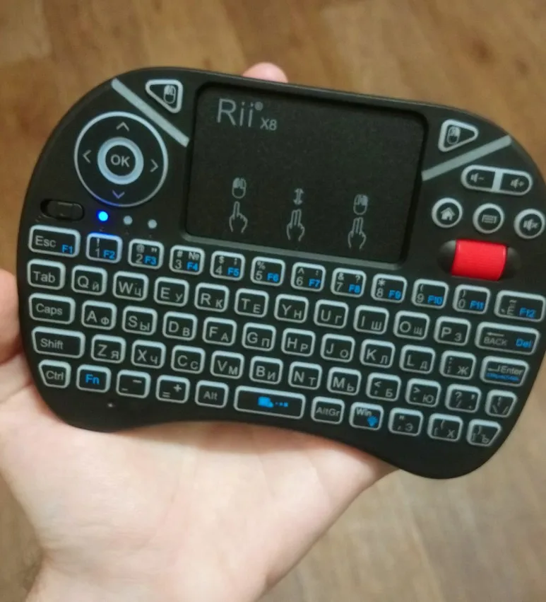 У меня имеется 3 клавитуры Rii, i8, x8 и i4. Самой удобной для использования остаётся i8, самая дешёвая. К сожалению добавляя полезные новшества, такие, как колесо прокрутки, или увеличенный и более хороший тачпад Rii уменьшают количество клавиш, и это плохо. Тут нет мультимдиа клавиш, и назначить их не на что, не на что назначить кнопку питания. Жаль, что я не могу найти клавиатуру, которая бы устраивала бы меня на 100% и смогла бы заменить пульт.