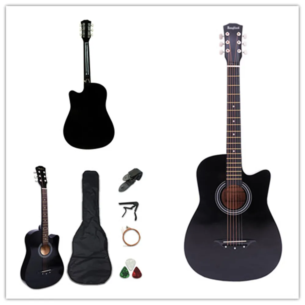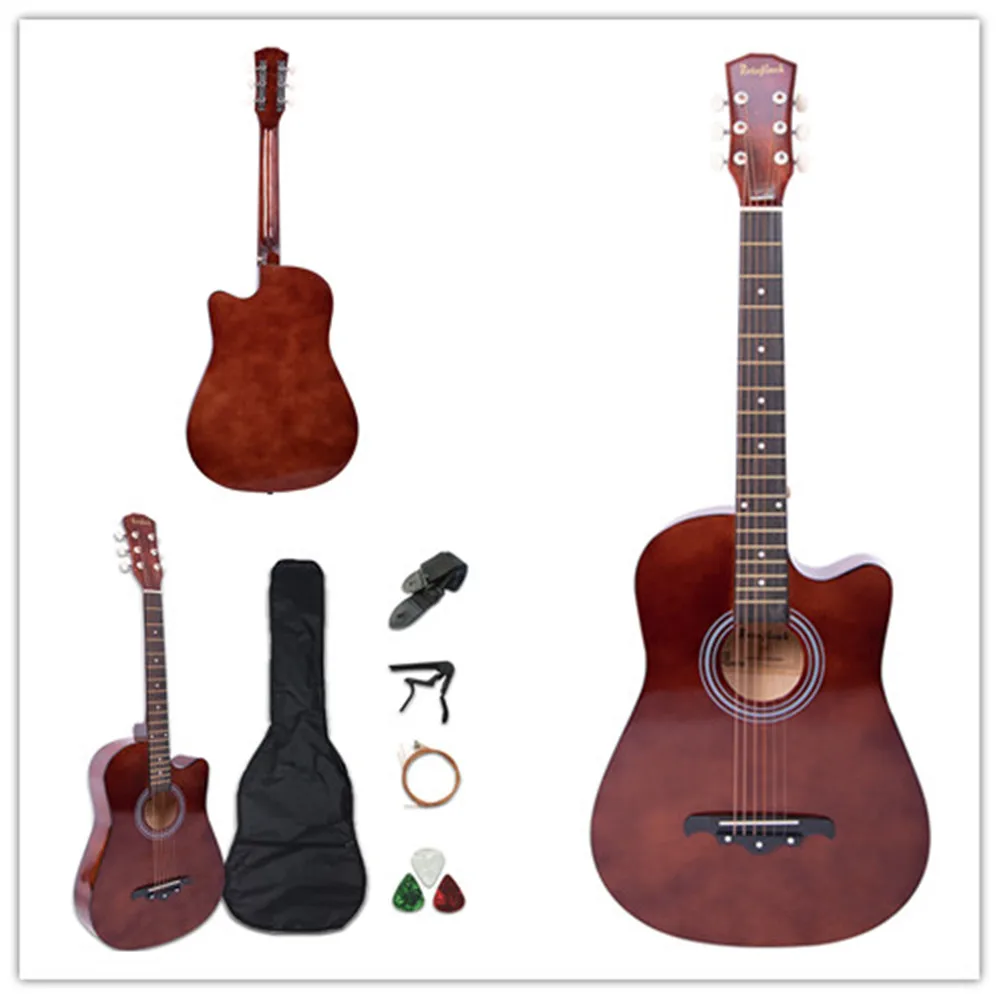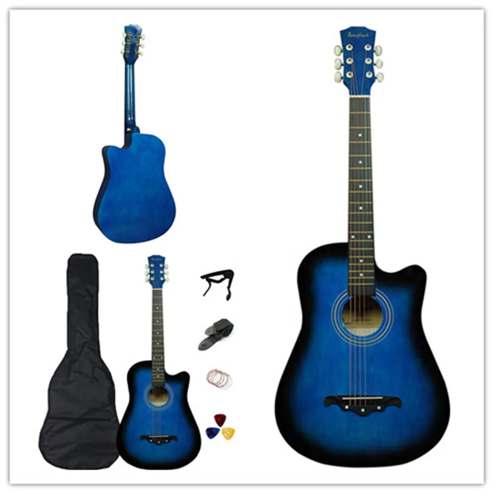 Комплект акустической гитары 3841 дюйма, фольклорная гитара для начинающих, 6 струн, черная, синяя, белая, деревянная, коричневая гитара AGT16
