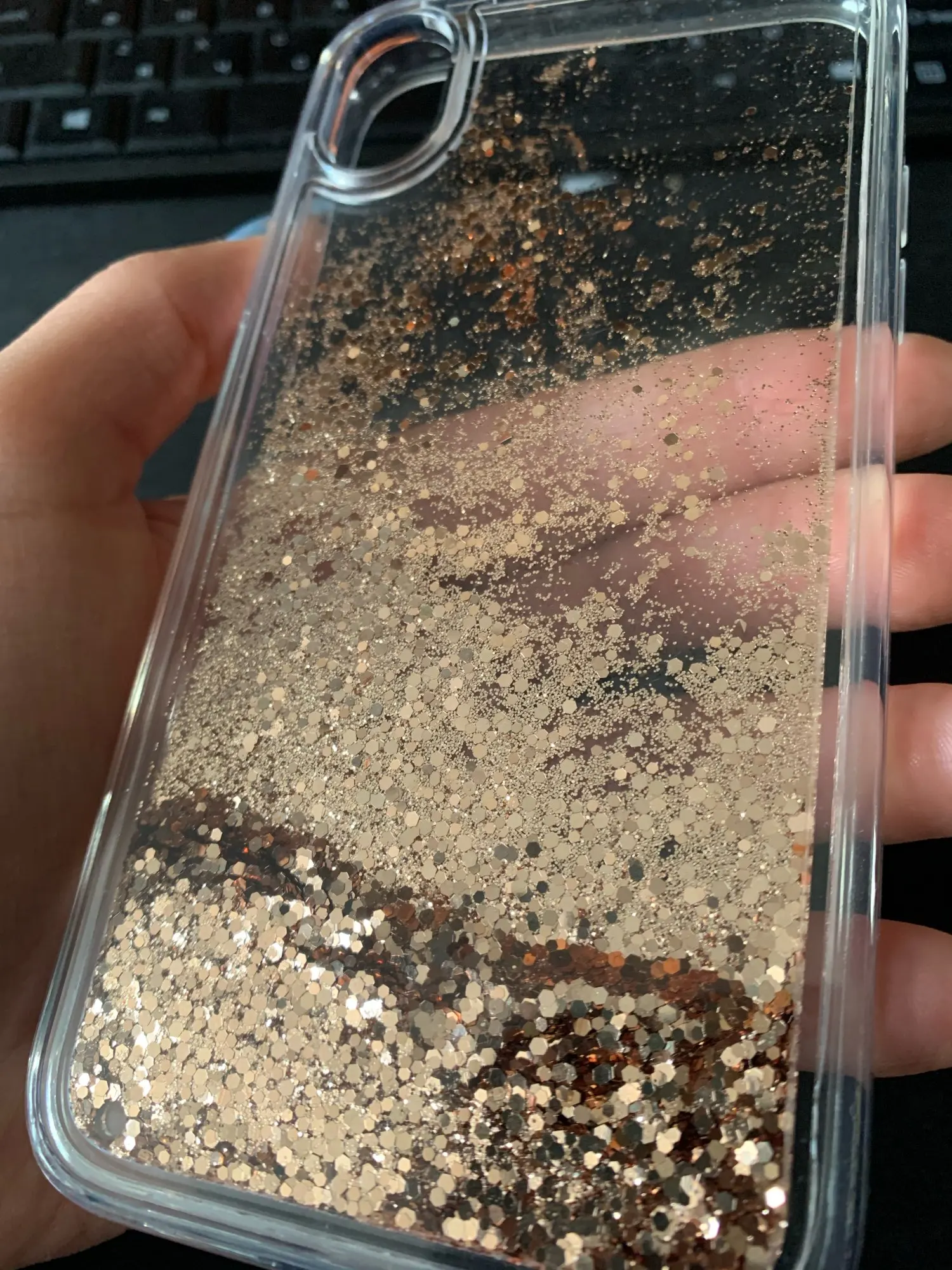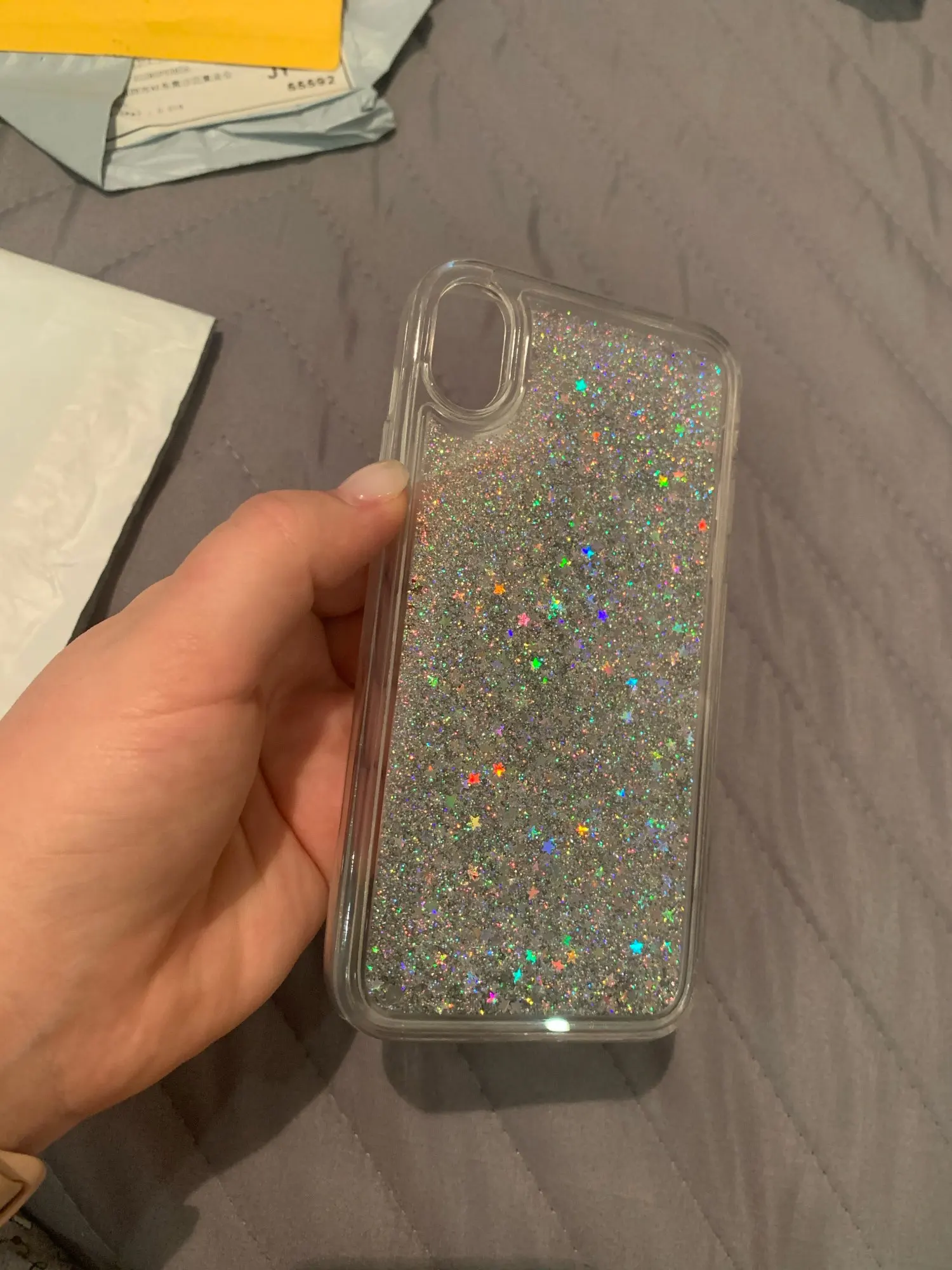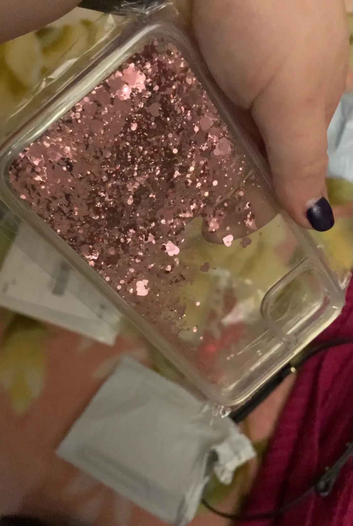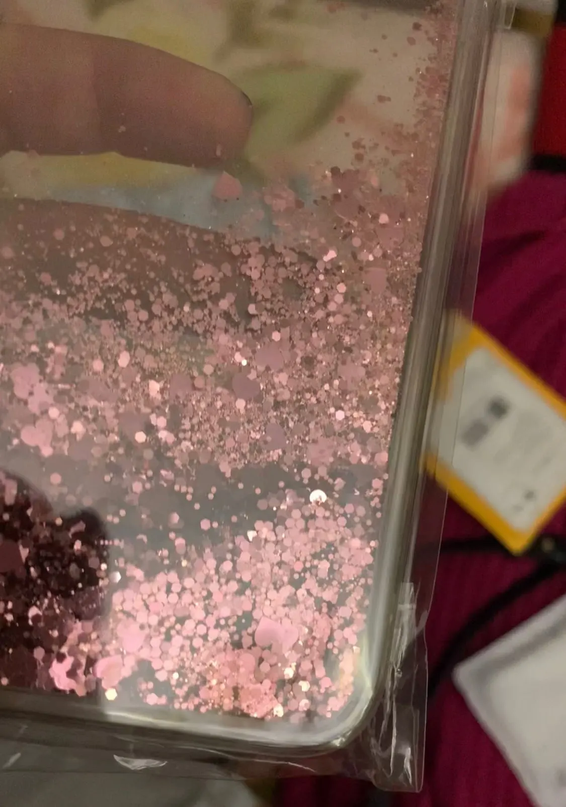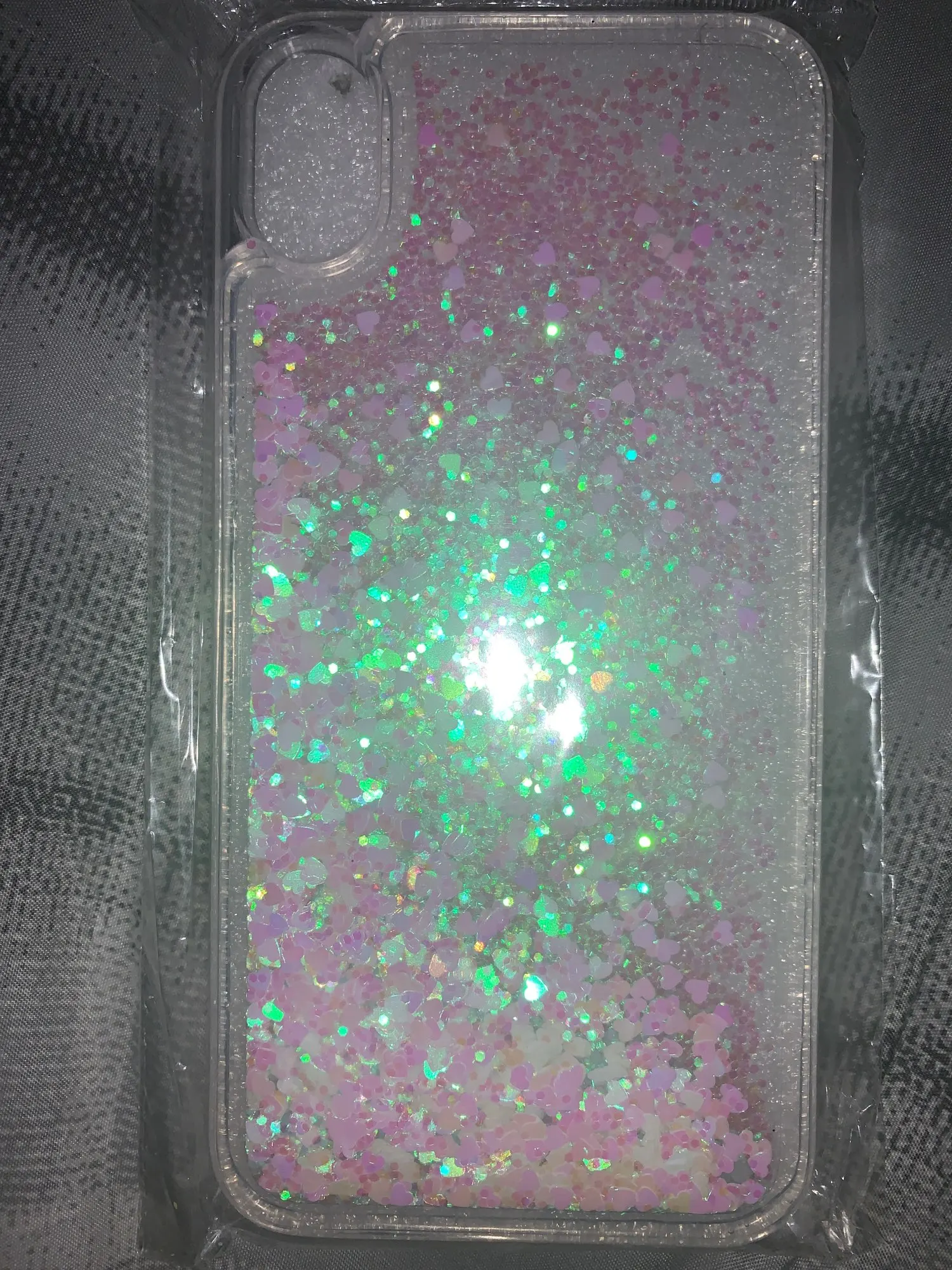 Блестки не такие, как на картинке. Нет сердец. Но чехол все еще приятный.