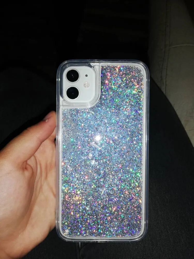 Чехол хорошо подошёл на 11 айфон, но задняя панель чехла ооочень толстая, там где блестки, и телефон увеличивается в 2 раза; это очень неудобно. Мне из за этого не понравился чехол, а так он красивый, блестки очень яркие и классно переливаются. Хороший Антистресс))