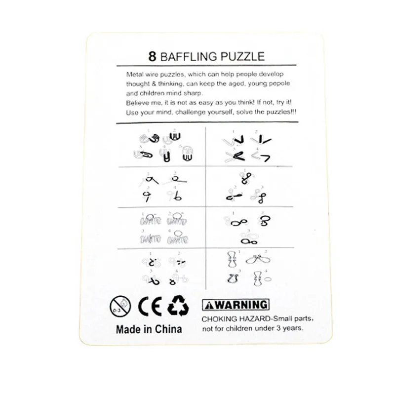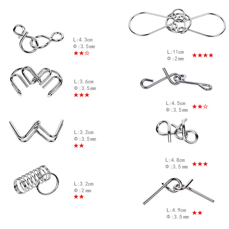 Этот металлический набор головоломок состоит из 8 классических металлических пазлов, все эти Пазлы очень Классические и популярные, очень идеально подходят для детей и взрослых.