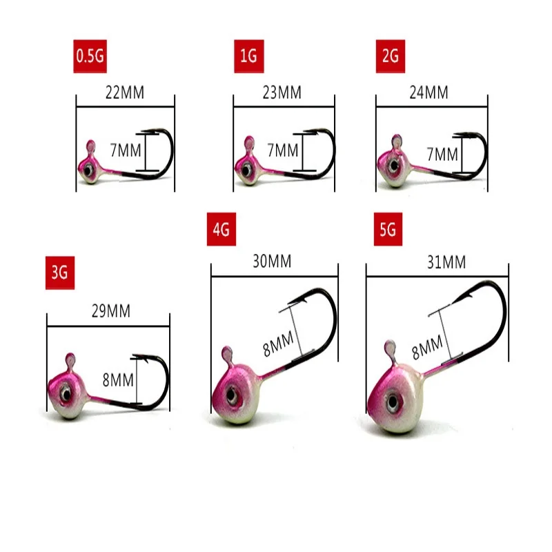 5 шт./лот 5g/1 г/2 г/3 г/4 г/5g/Luya мини рыболовный крючок может использоваться с мягкое насекомое крючками джиг-головками розового цвета рыболовные крючки