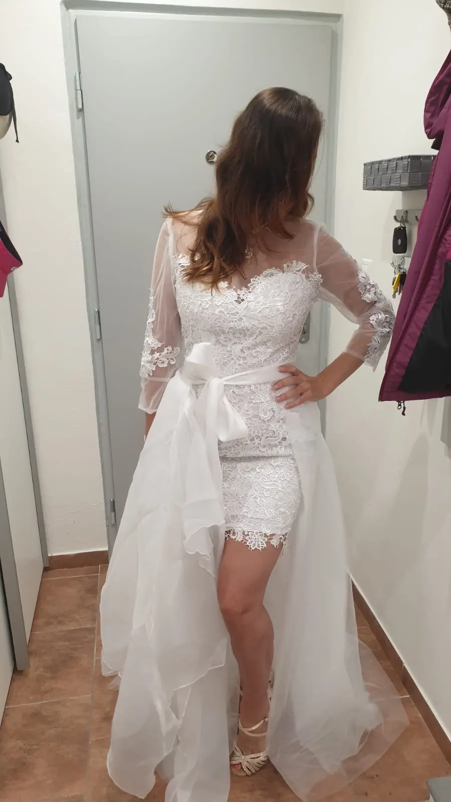 Свадебное платье из двух частей с овальной аппликацией и съемным шлейфом, Дубай, свадебное платье с длинными рукавами, платье для невесты в стиле бохо