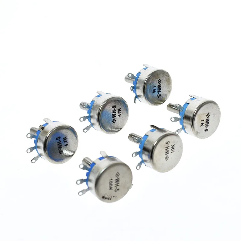 WH5-1A углеродный потенциометр 1K 2K 10K 47K 4K7 470R 100K 470K 220K 1K5 22K 1M ohm 3-контактный круглый вал вращающийся конус WH5