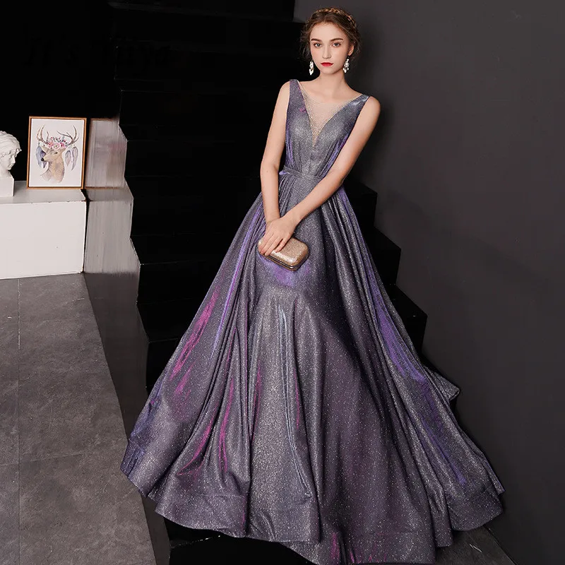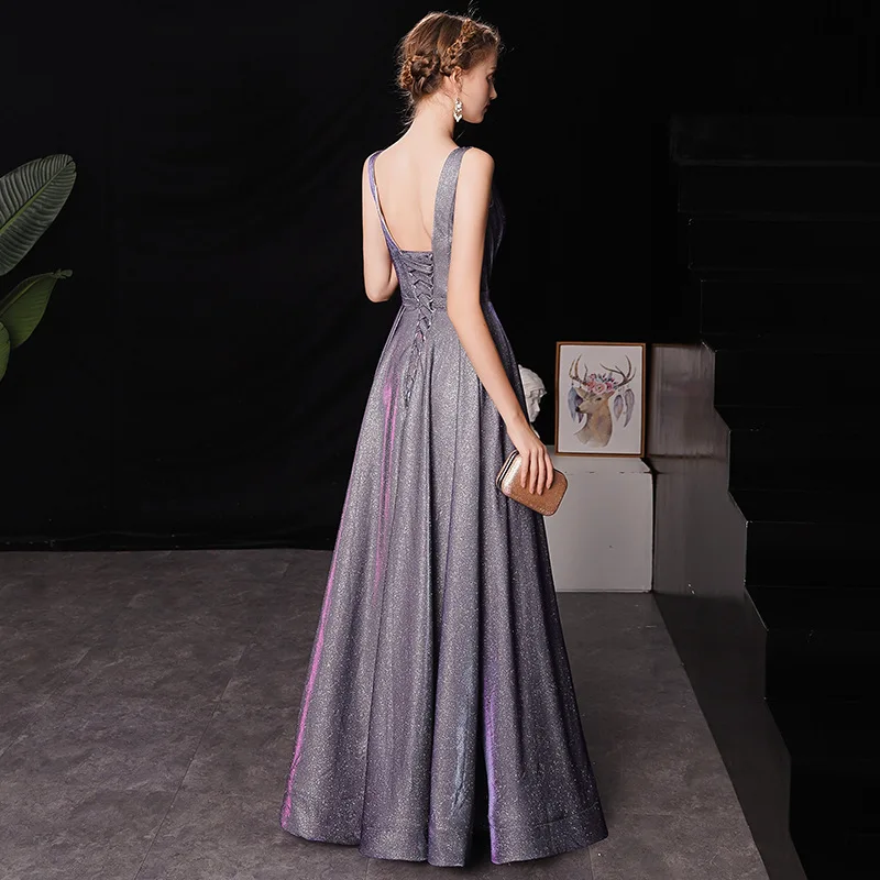 Женское вечернее платье It's YiiYa, фиолетовое длинное платье на бретелях со стразами и V-образным вырезом на шнуровке, модель E034, 2019